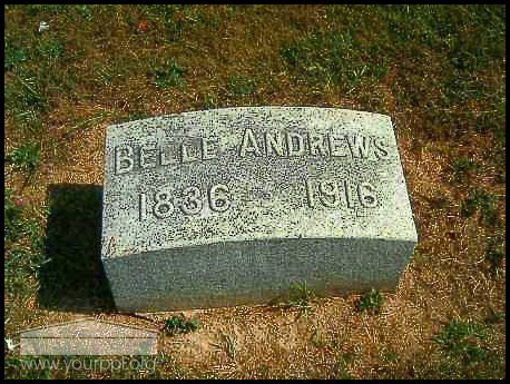 - Photo image of the headstone of Belle Andrews in Confidence Cemetery located in Brown County.