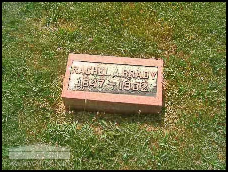 - Photo image of the headstone of Rachel A. Brady in Ashridge Cemetery located in Brown County.