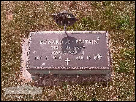 - Photo image of the headstone of Edward E. Britain in Ashridge Cemetery located in Brown County.