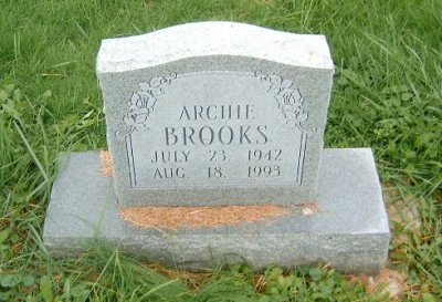 - Photo image of the headstone of Archie Brooks in Charter Oaks Cemetery located in Brown County.