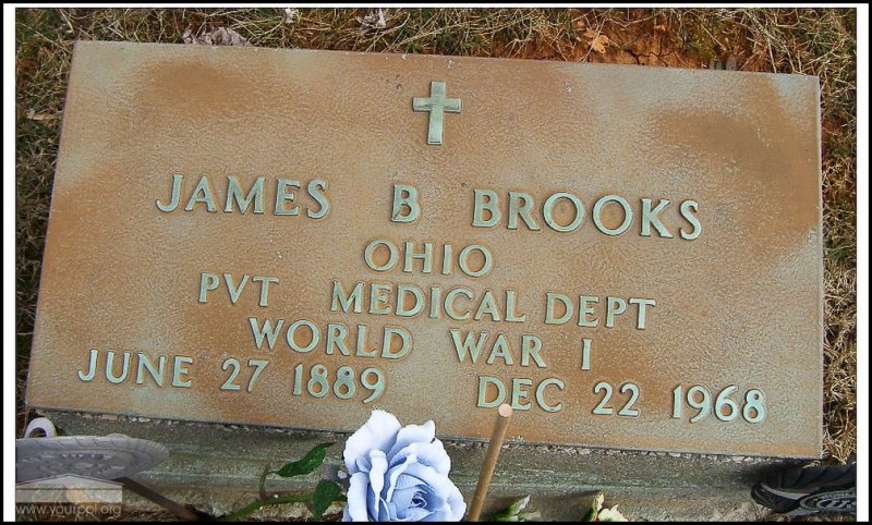 - Photo image of the headstone of James B. Brooks in Village Cemetery located in Adams County. This cemetery is also known as Pumpkin Ridge Cemetery.