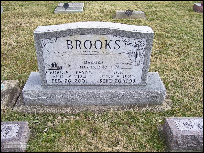 - Photo image of the headstone of Joe and Georgia Brooks in Sugartree Ridge Cemetery located in Highland County.