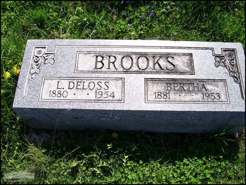 - Photo image of the headstone of Bertha and L. Deloss Brooks in Rushtown Cemetery located in Scioto County.