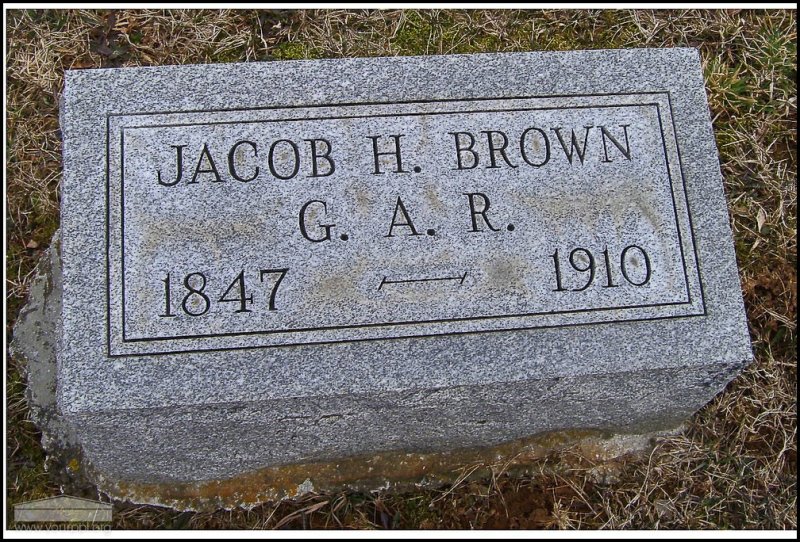 - Photo image of the headstone of Jacob H. Brown in Village Cemetery located in Adams County. This cemetery is also known as Pumpkin Ridge Cemetery.