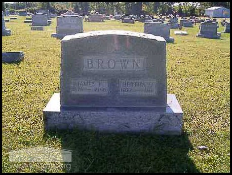 - Photo image of the headstone of James and Bertha Brown in Confidence Cemetery located in Brown County.
