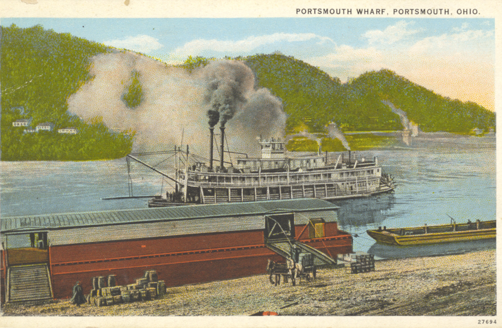 C T American Art, published by I. Robbins & Sons, Pittsburgh, PA, “Portsmouth Wharf, Portsmouth, Ohio,” Scioto County Public Library Local History Digital Collection, accessed December 14, 2025, https://sciotolibrary.org/history/items/show/1078.