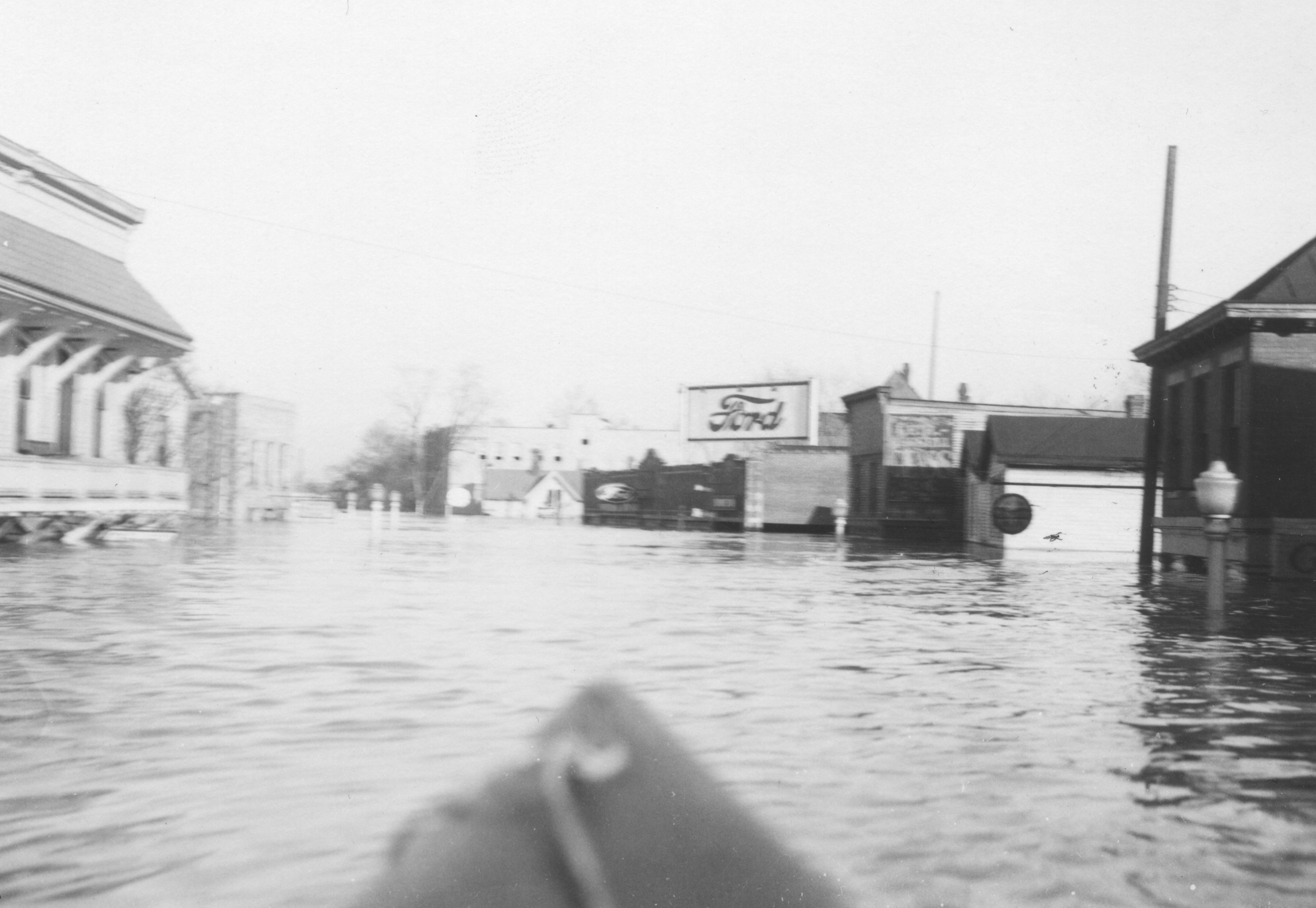 East end of Gallia Street. The Ford Motor Cars Sales & Service building on the far right side was located at 1112-1120 Gallia Street. - Creator