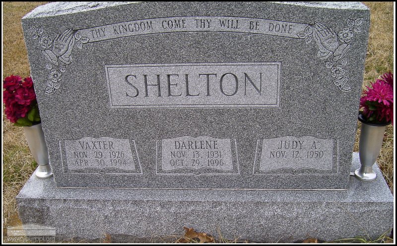 - Photo image of the headstone of Vaxter, Darlene, and Judy A. Shelton in Scioto Burial Park located in Scioto County.