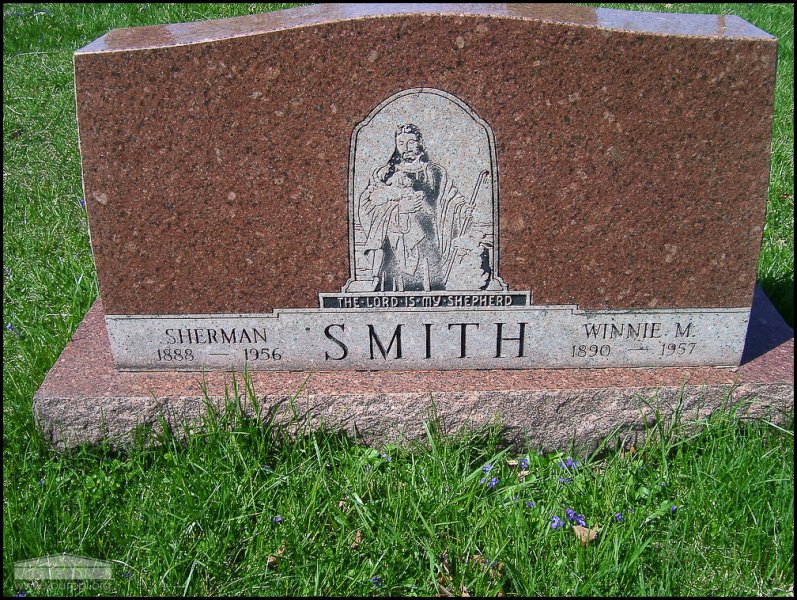 - Photo image of the headstone of Sherman and Winnie M. Smith in Mt. Joy Cemetery located in Scioto County.