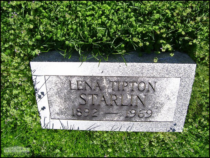 - Photo image of the headstone of Lena Tipton Starlin in Rushtown Cemetery located in Scioto County.