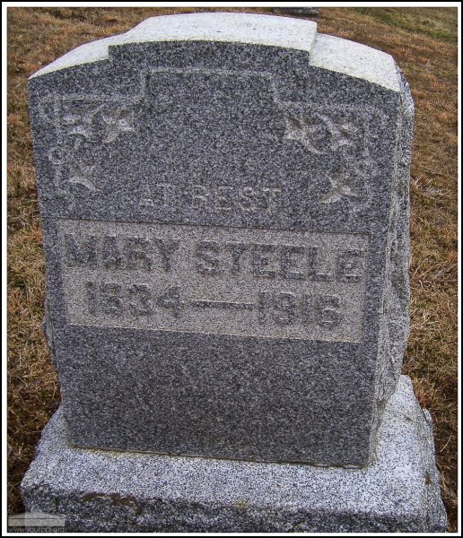 - Photo image of the headstone of Mary Steele in Village Cemetery located in Adams County. This cemetery is also known as Pumpkin Ridge Cemetery.