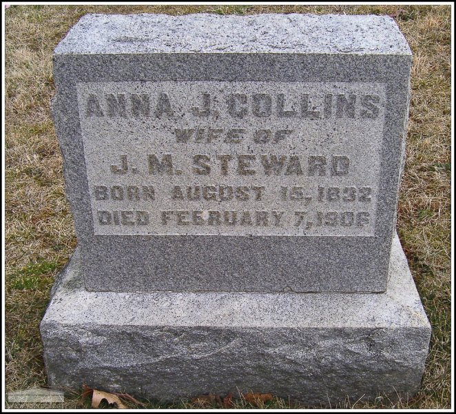 - Photo image of the headstone of Anna J. Collins Steward in Village Cemetery located in Adams County. This cemetery is also known as Pumpkin Ridge Cemetery.