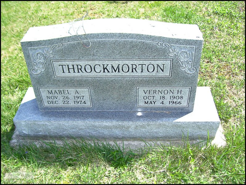 - Photo image of the headstone of Vernon H. and Mabel A. Throckmorton in Mt. Joy Cemetery located in Scioto County.