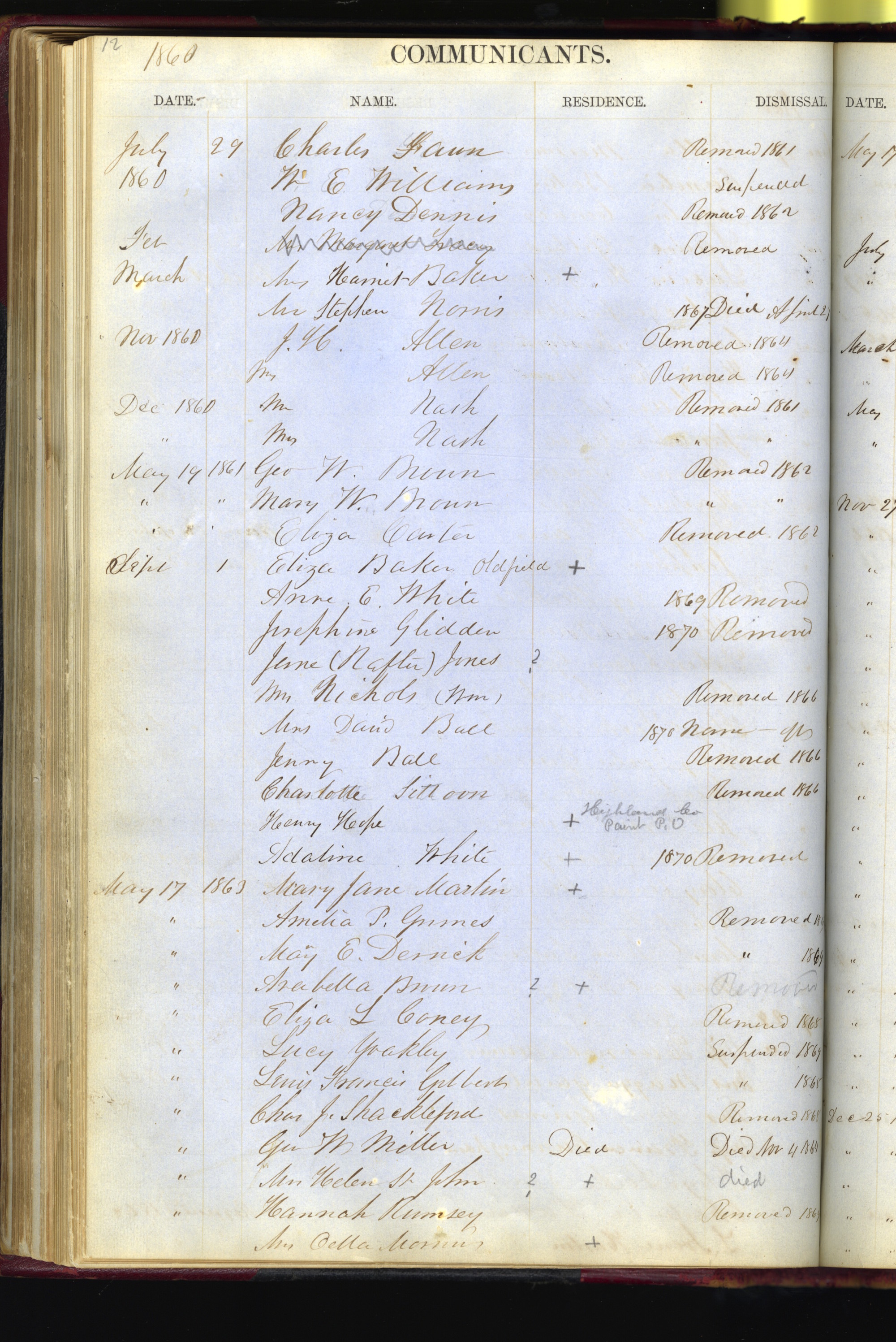 - scan of cursive written page of the Parish register for All Saints Church, Portsmouth, Ohio. Listed are communicants.