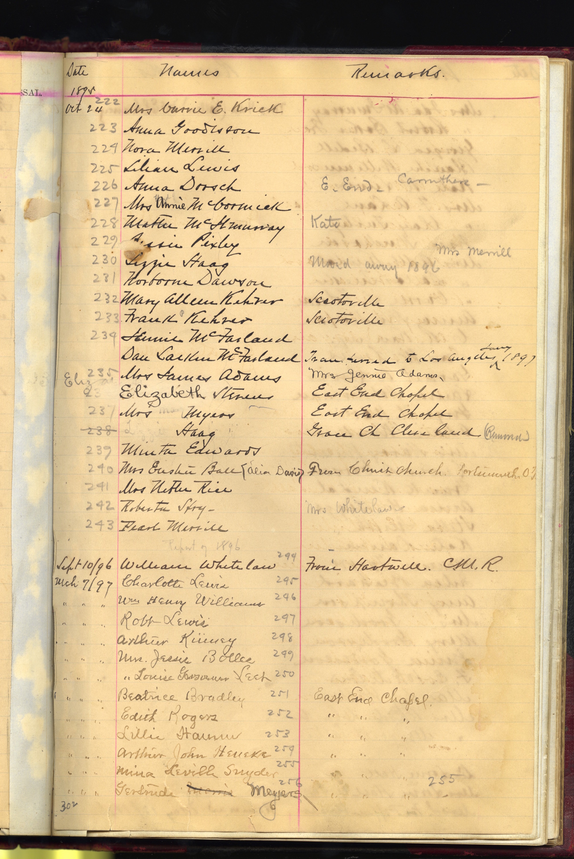 - scan of page from All Saints Church Ledger. Shown is handwritten page listing names of communicants and remarks. Black ink.