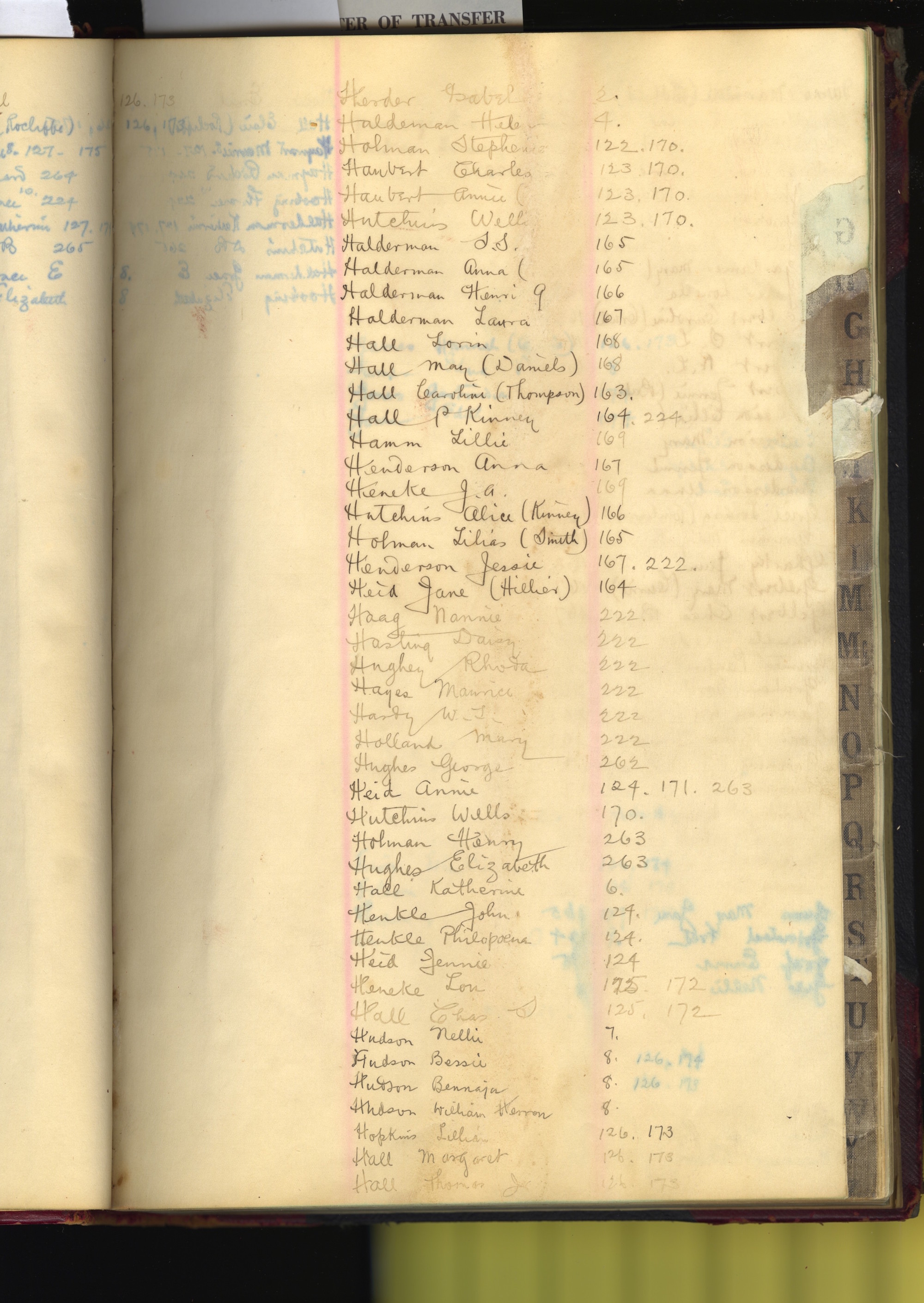 - scan of page from All Saints Church Ledger. Shown is lined page with handwritten information listed in rows beneath.
