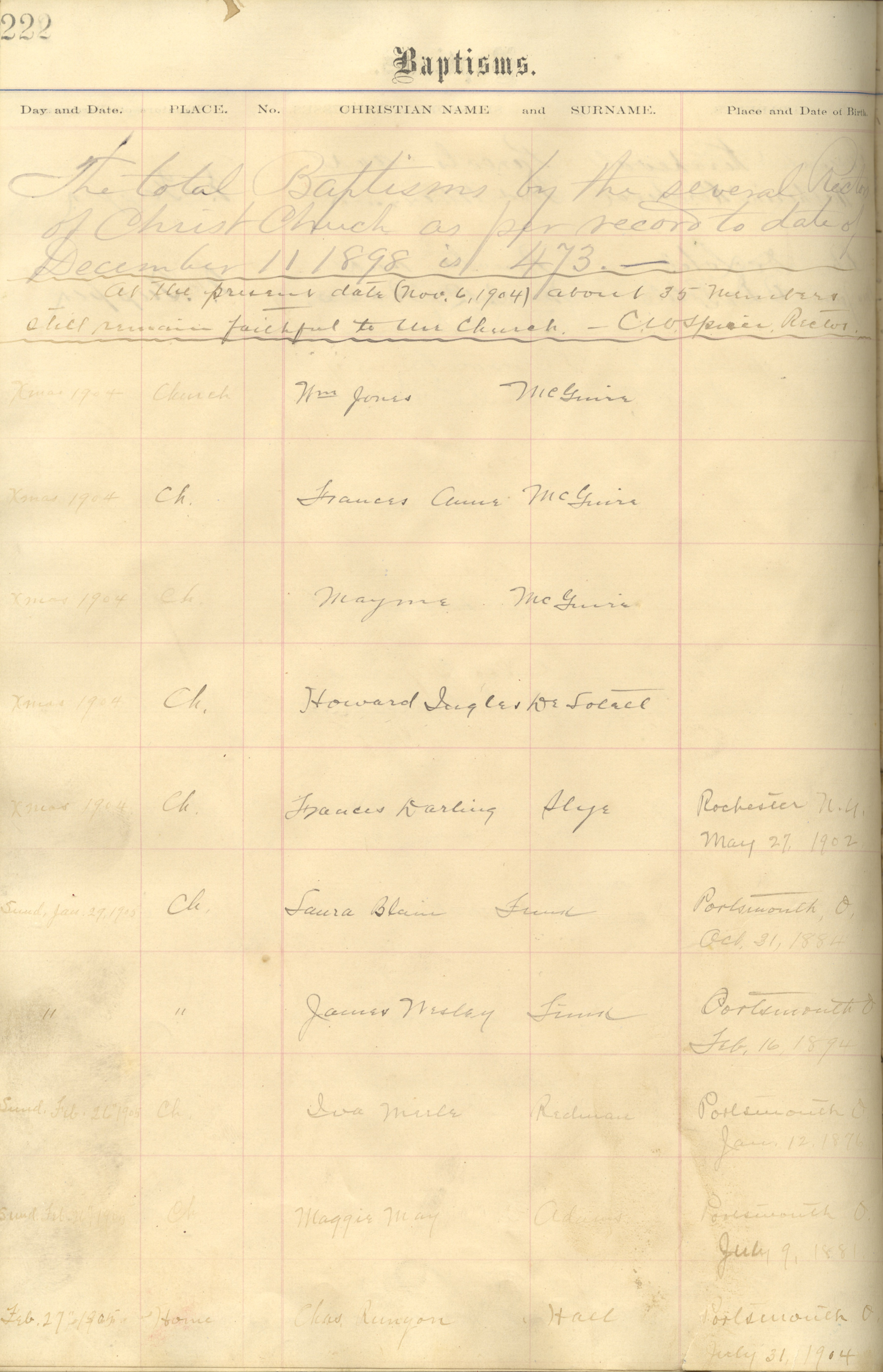 - scan of page from All Saints Church Ledger. Shown is typed title at top of page "baptisms" with handwritten
