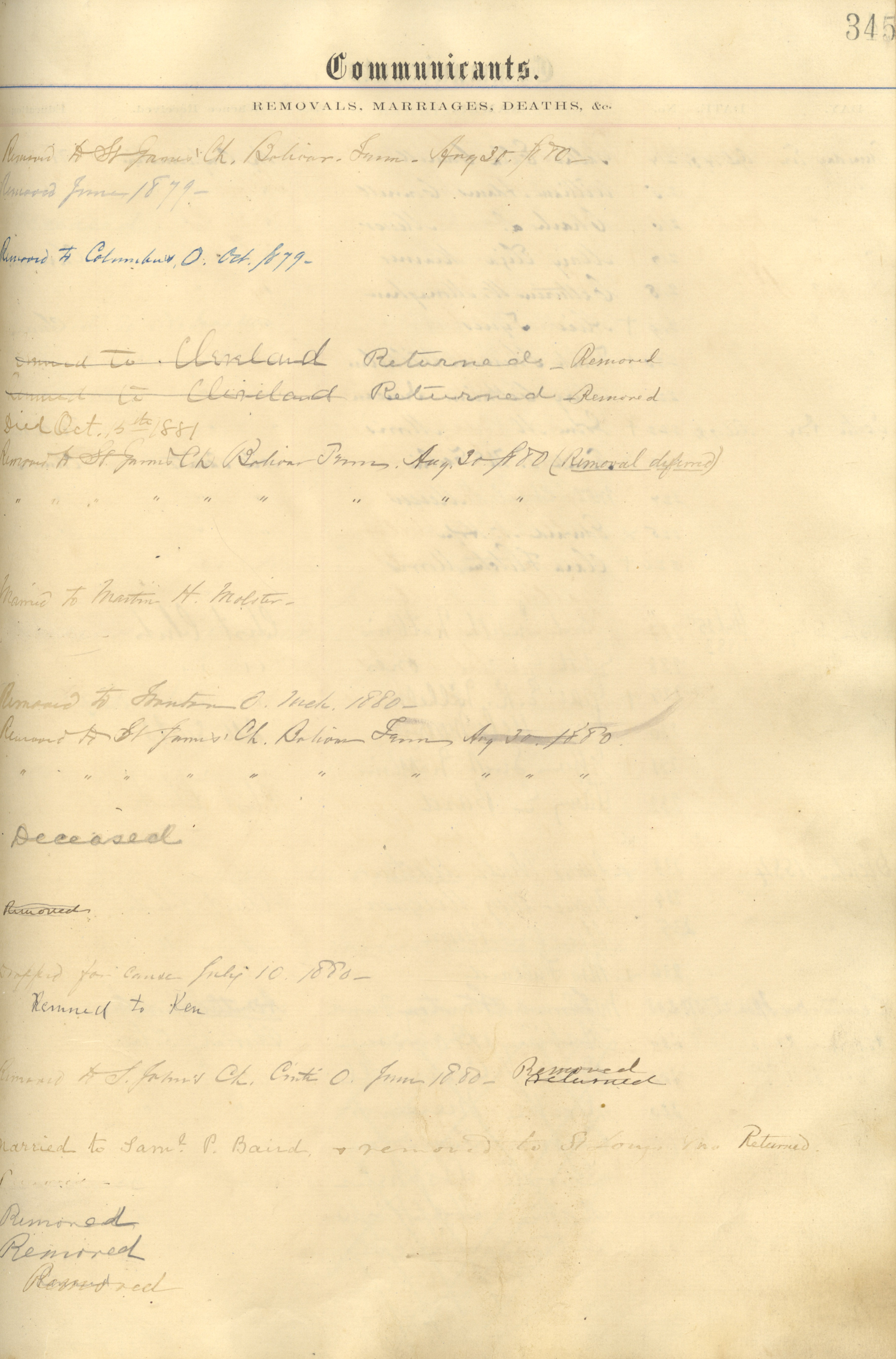- scan of page from All Saints Church Ledger. Shown is typed title at top of page "communicants" with handwritten names and dates listed beneath.