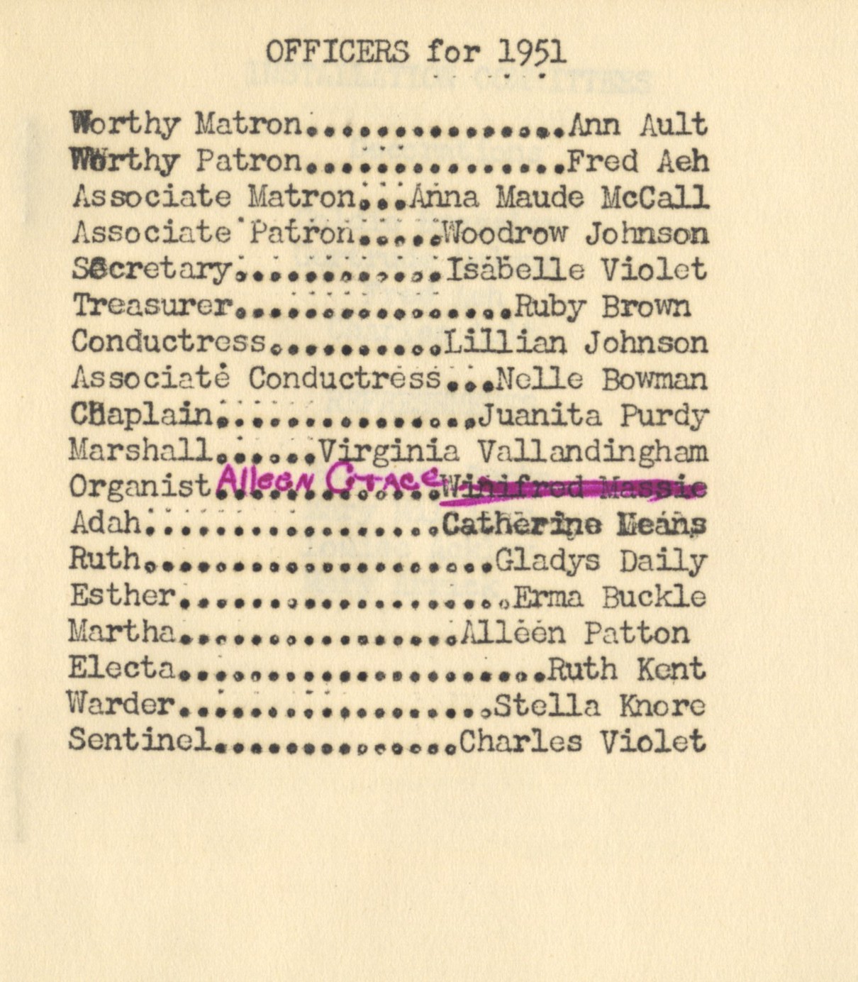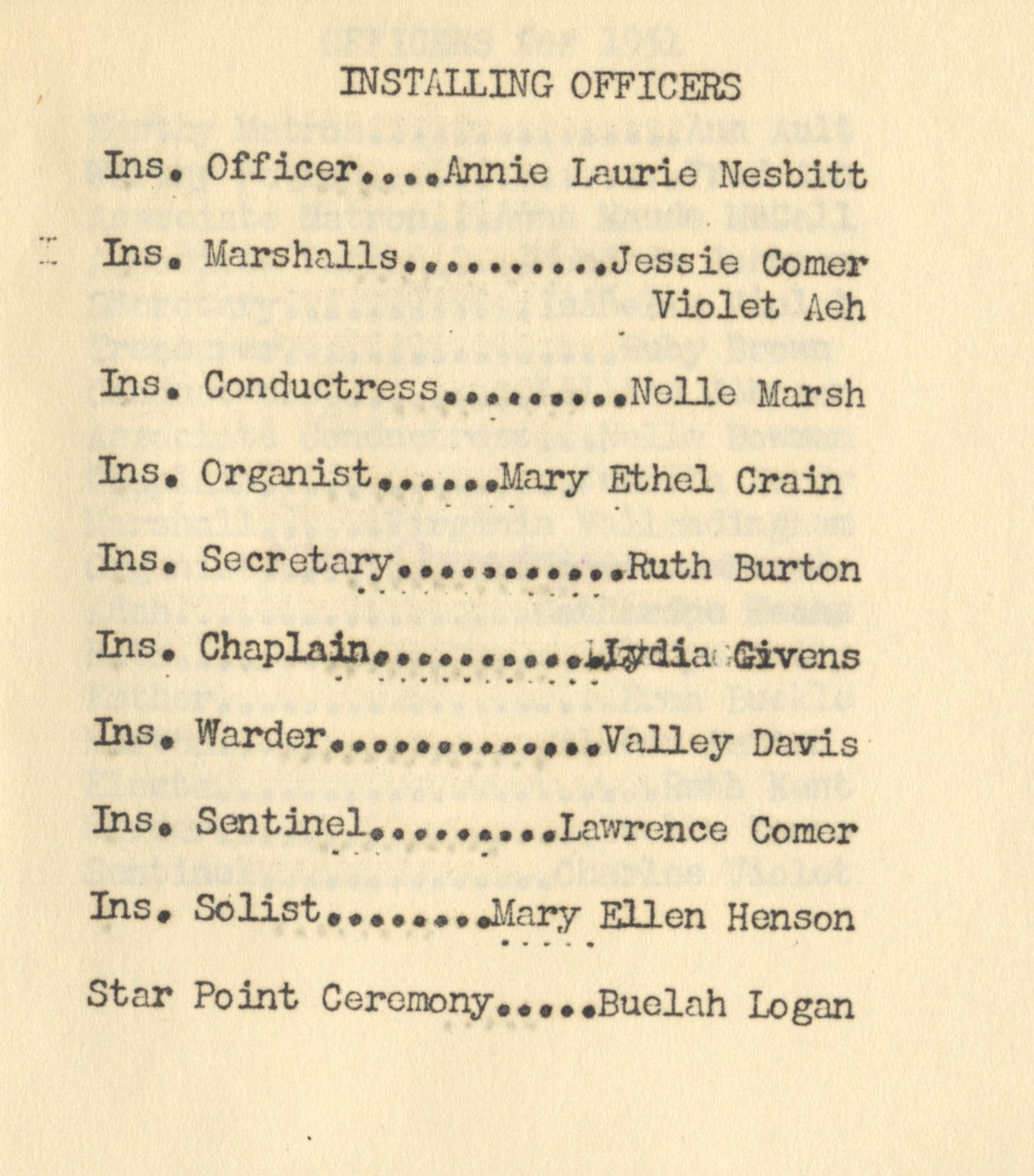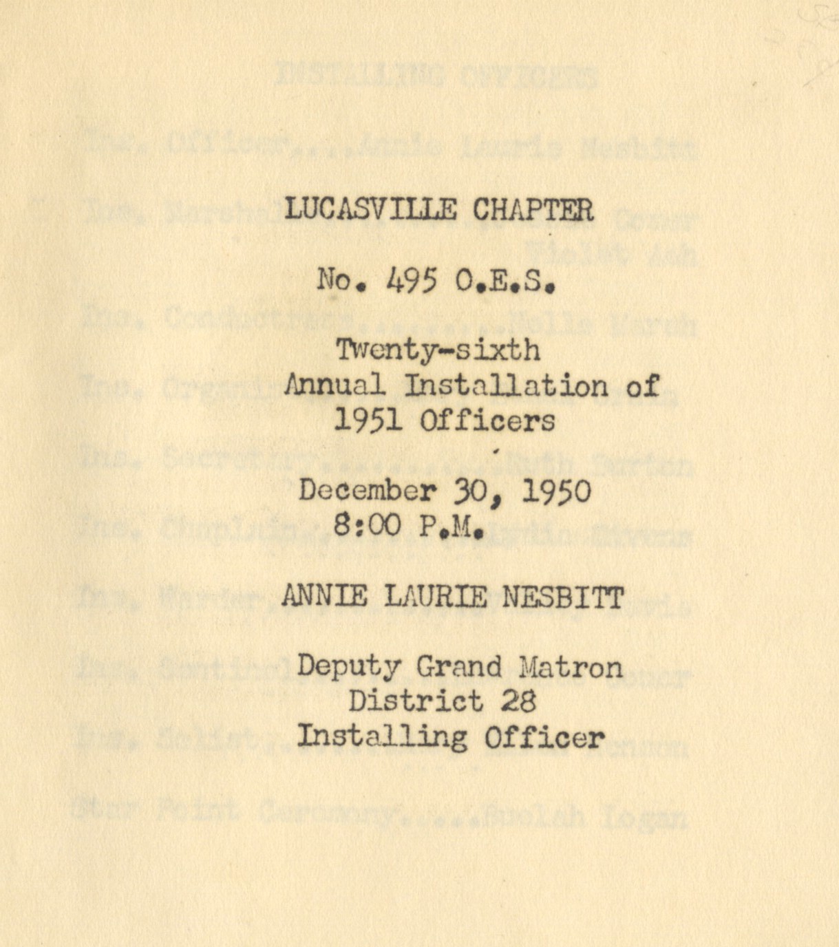 - Installation of Officers for 1951