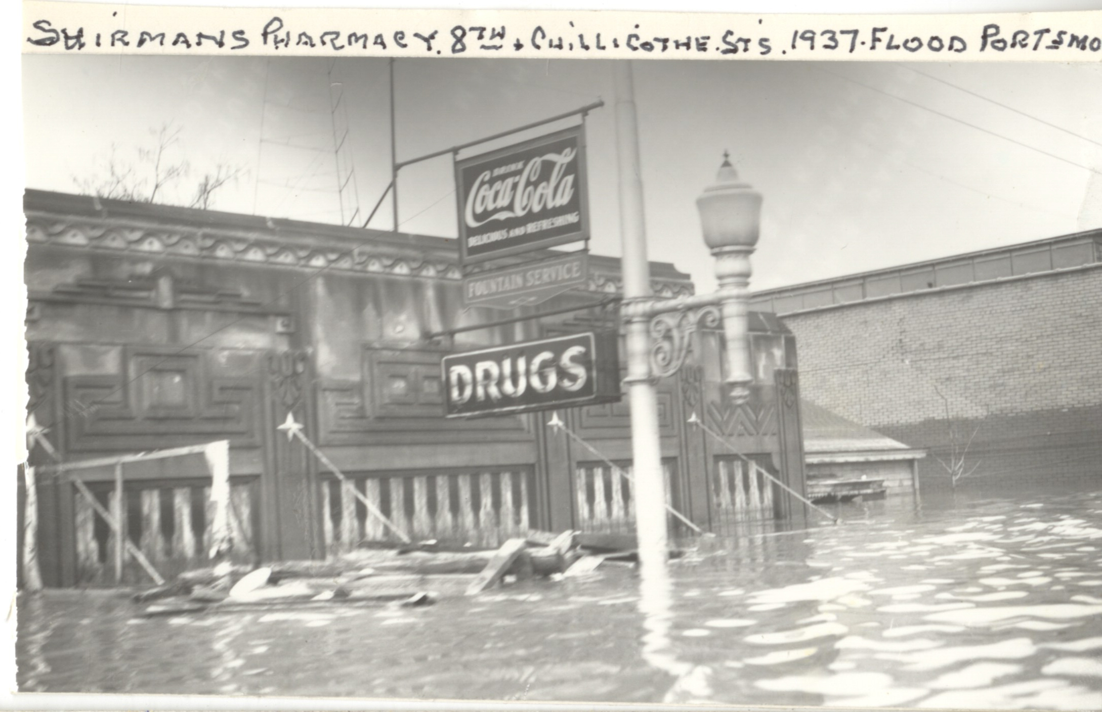 Unknown, “Shirman's Pharmacy, 8th (Eighth) and Chillicothe Streets, 1937 Flood, Portsmouth, Ohio,” Scioto County Public Library Local History Digital Collection, accessed December 17, 2025, https://sciotolibrary.org/history/items/show/18097.