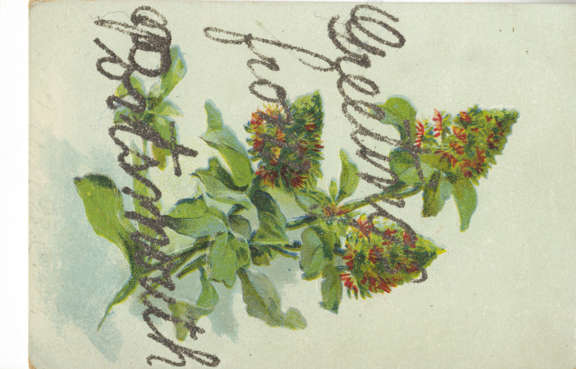 - Small red flowers with long green stems with the words "Greetings From Portsmouth" written in cursive script.