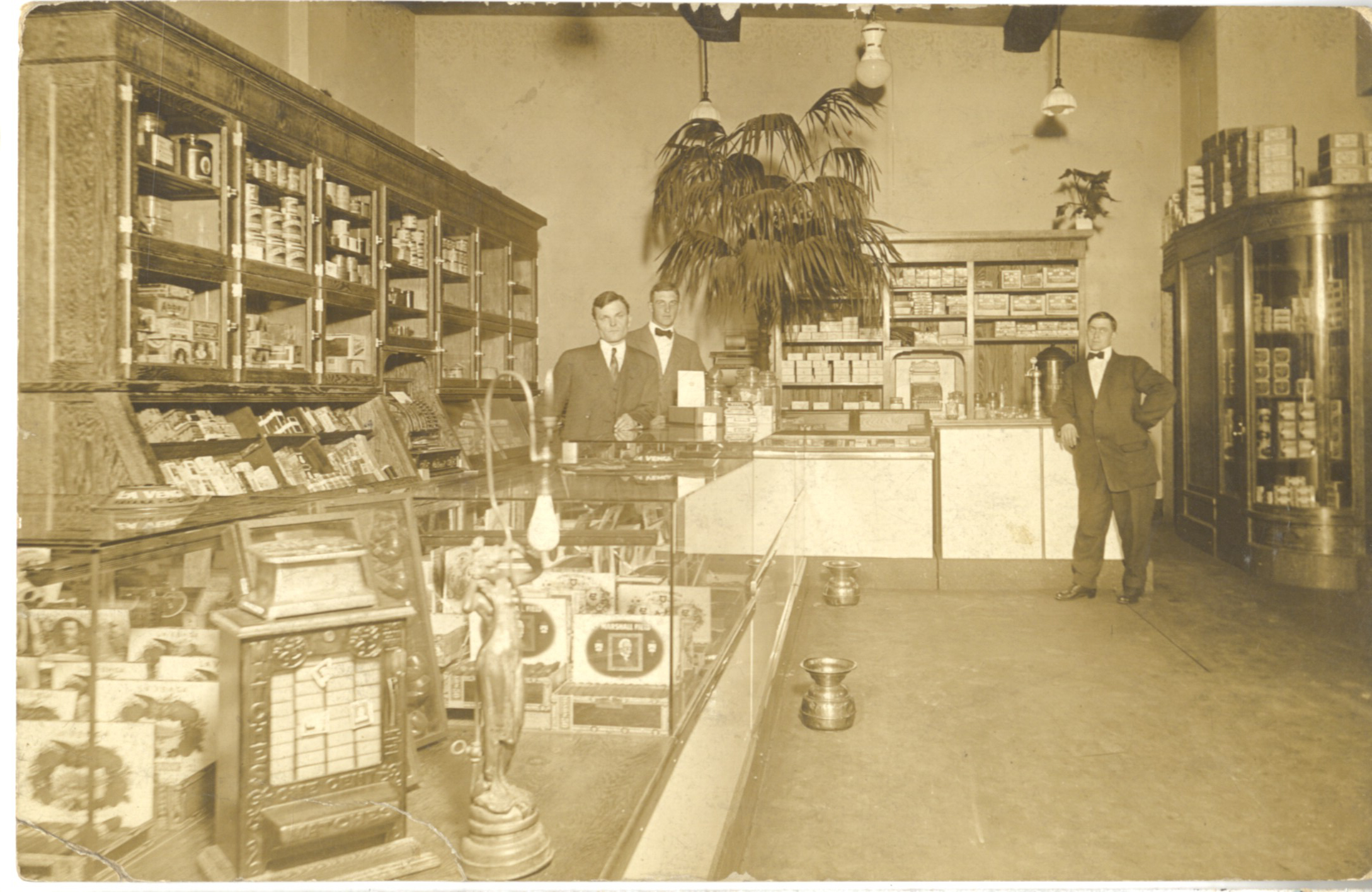 - Black and white photo image of the interior of the Smoke House, located at 503 Chillicothe Street. The business manufactured and sold cigarettes and cigars.