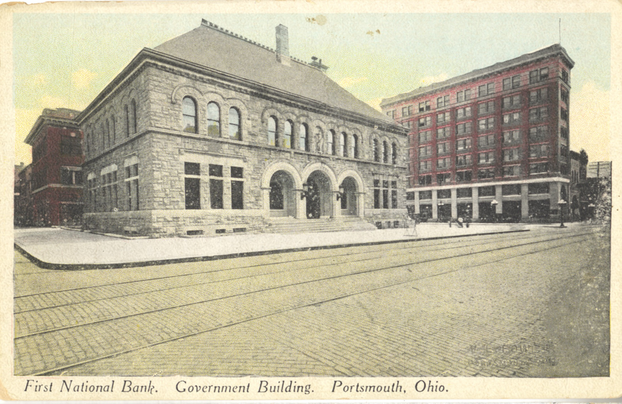 Unknown, “First National Bank, Government Building, Portsmouth, Ohio,” Scioto County Public Library Local History Digital Collection, accessed December 21, 2025, https://sciotolibrary.org/history/items/show/18984.
