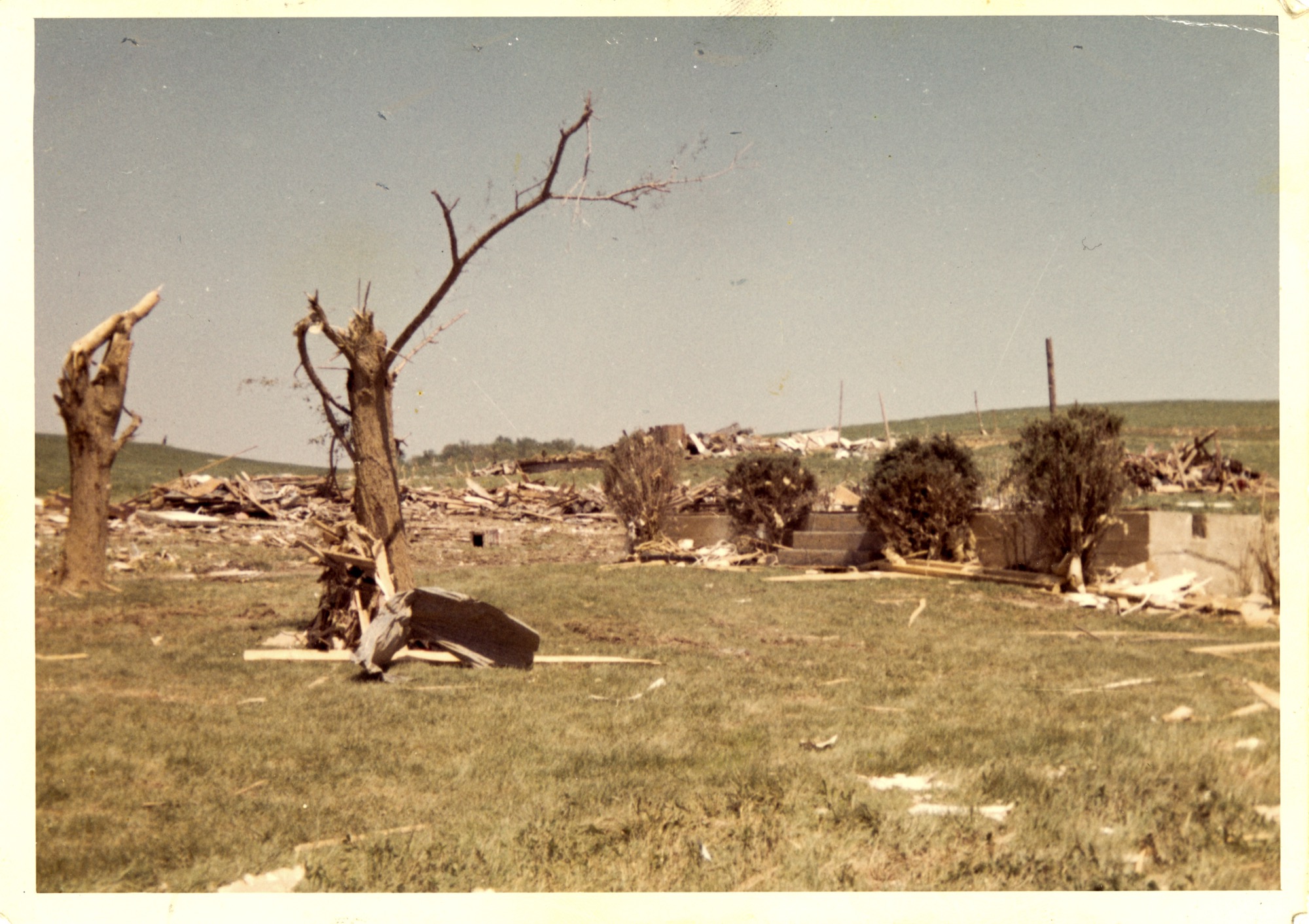 - Colorized photo image of the remains of the front of George Sherman's house in Wheelersburg.