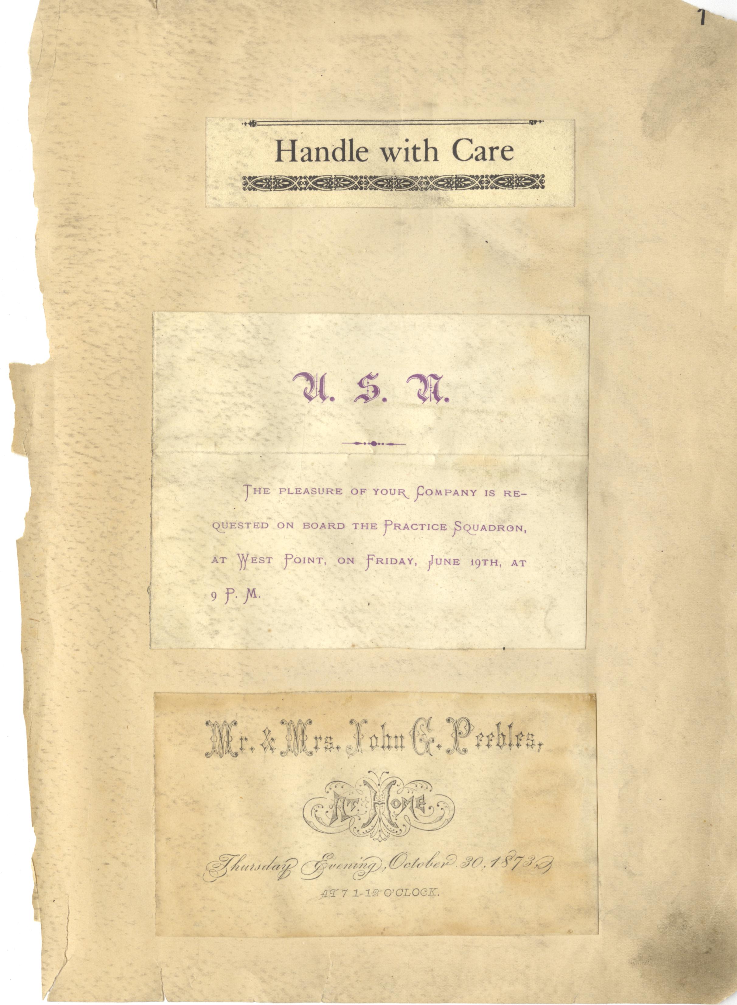 Reception Card to a Gathering at Mr. and Mrs. John G. Peebles on October 30, 1873. The Peebles family was very prominent in Portsmouth during this time. - Creator