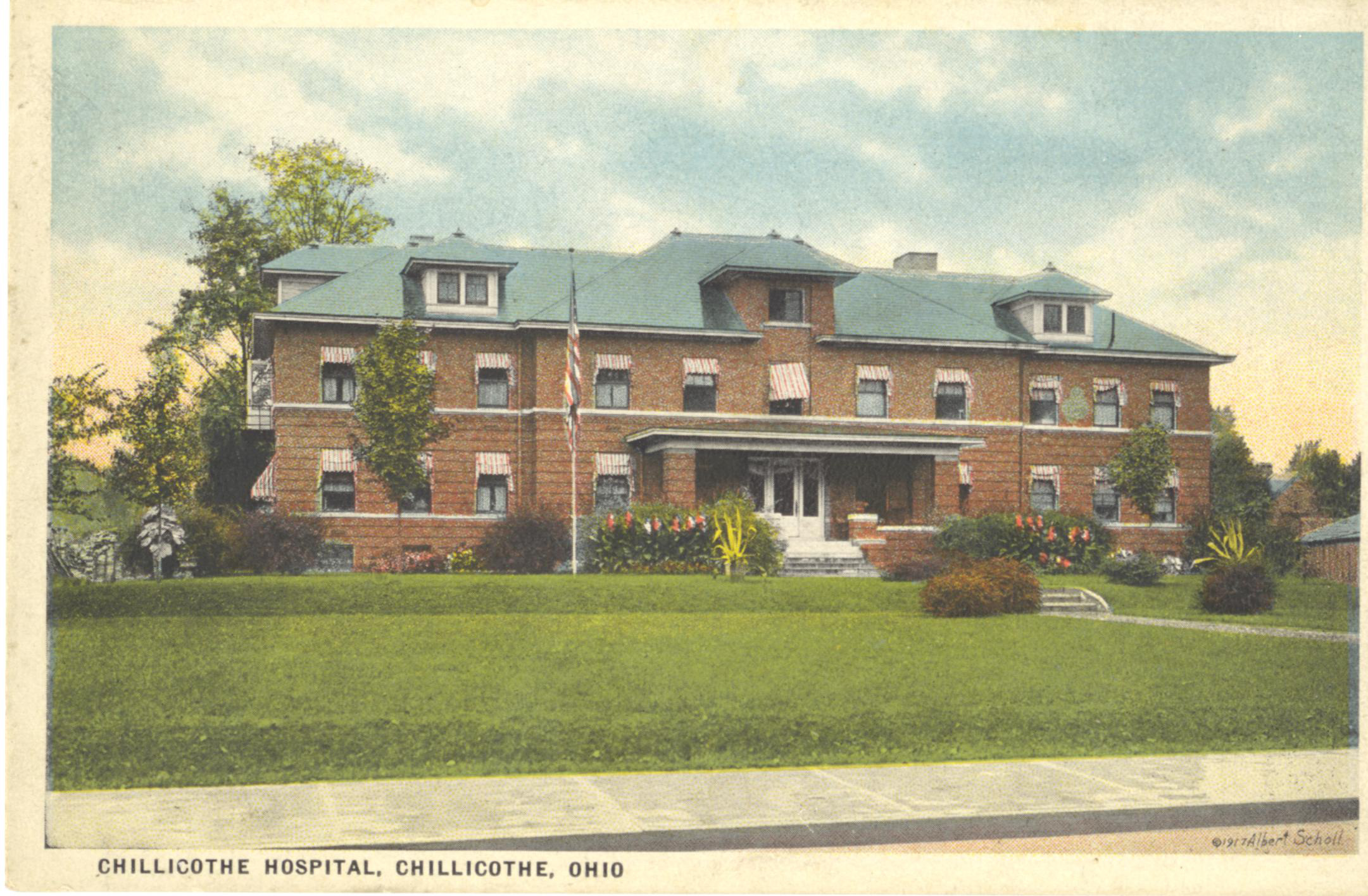 Published by the Scholl Printing Co., Chillicothe, O., “Chillicothe Hospital, Chillicothe, Ohio,” Scioto County Public Library Local History Digital Collection, accessed December 17, 2025, https://sciotolibrary.org/history/items/show/21637.