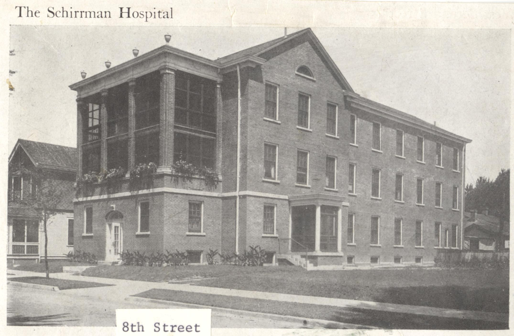 - Black and white photo of the Schirrmann Hospital built at 729 Eighth (8th) Street in 1929 by Dr. Harry A. Schirrmann. It closed in the early 1940's, but was reopened in 1946 as the Smith-Everett Hospital by Dr. Charles Smith and Dr. Clyde Everett. In 1962 it was renamed Southern Hills Hospital, but closed in 1987. One year later it became Hempstead Manor, a residential home for seniors.