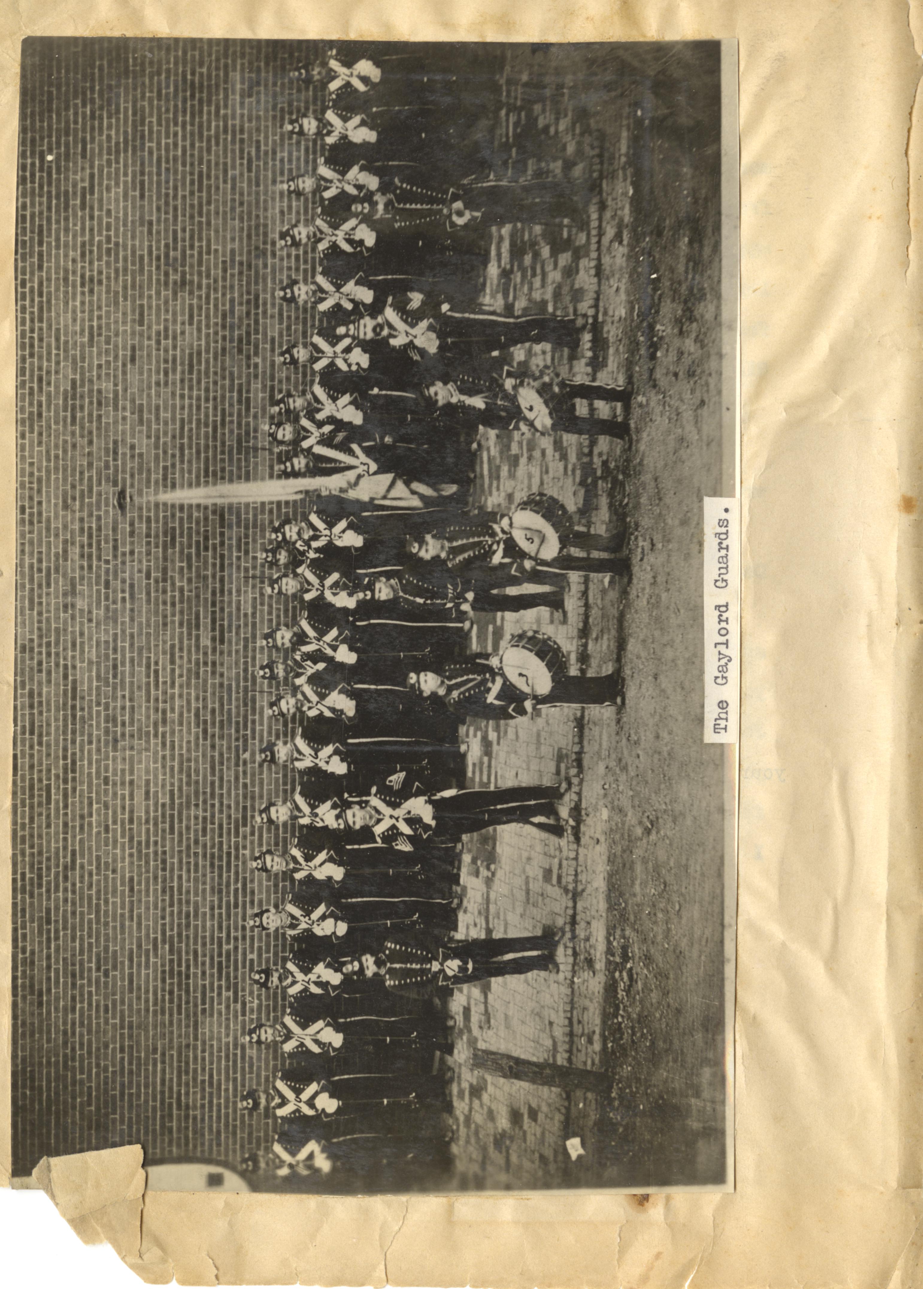 - Scanned unnumbered page from Henry A. Lorberg scrapbook containing a black & white image of The Gaylord Guards.