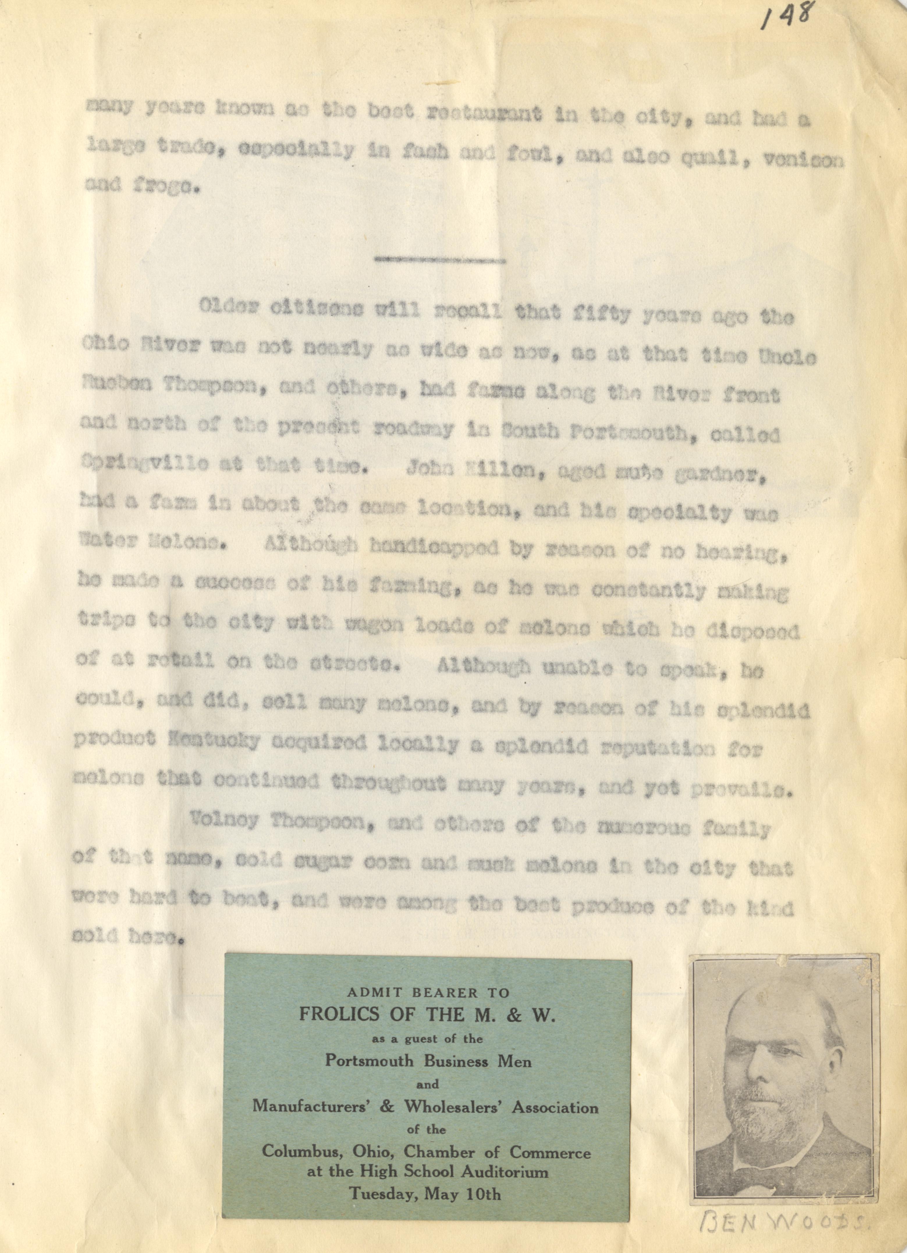 Henry A. Lorberg, “Farms along the River Front; Frolics of the M. & W.; Ben Woods,” Scioto County Public Library Local History Digital Collection, accessed December 17, 2025, https://sciotolibrary.org/history/items/show/22136.