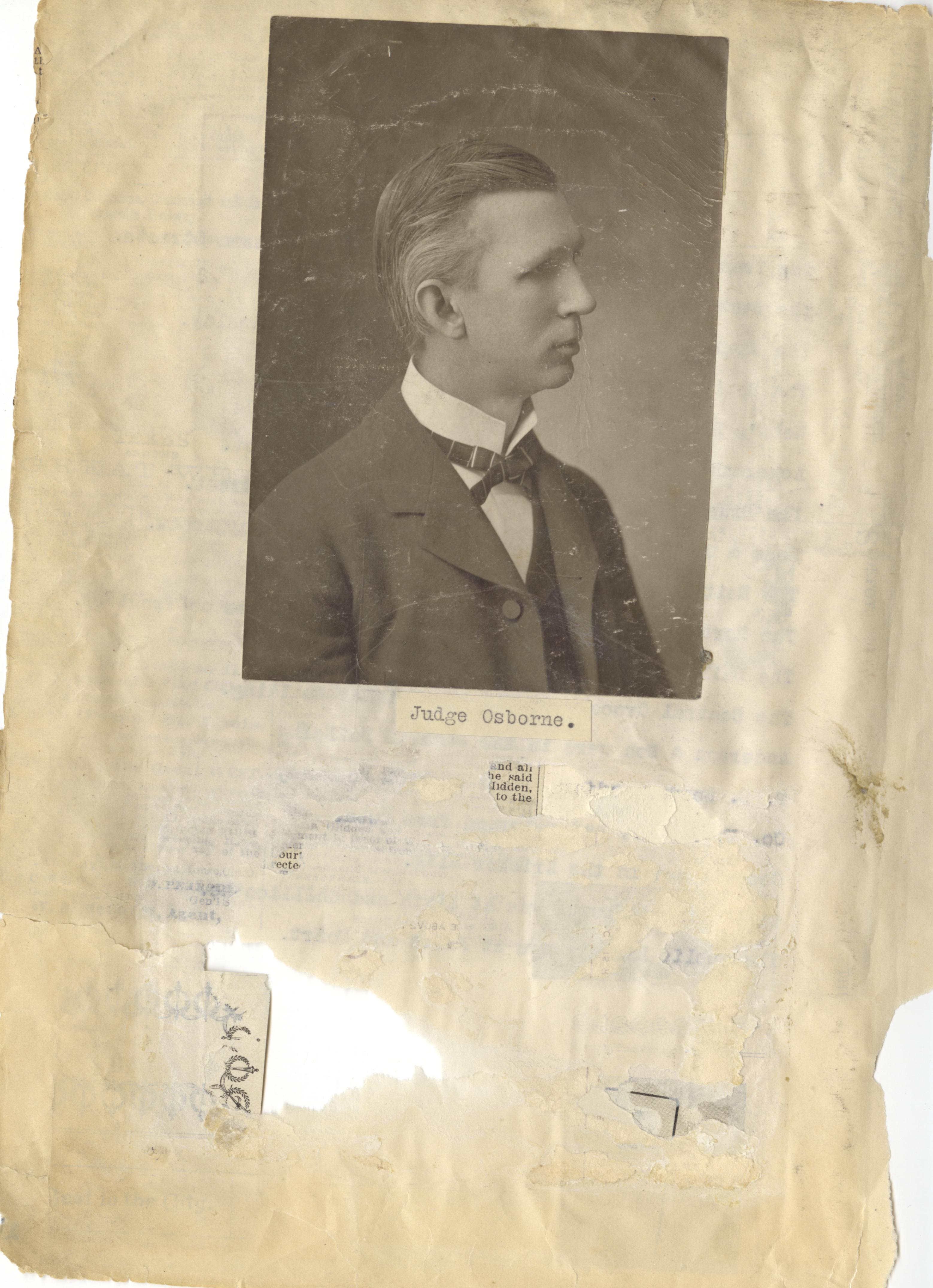 - Scanned unnumbered page from Henry A. Lorberg scrapbook containing a black & white image of Judge Osborne.