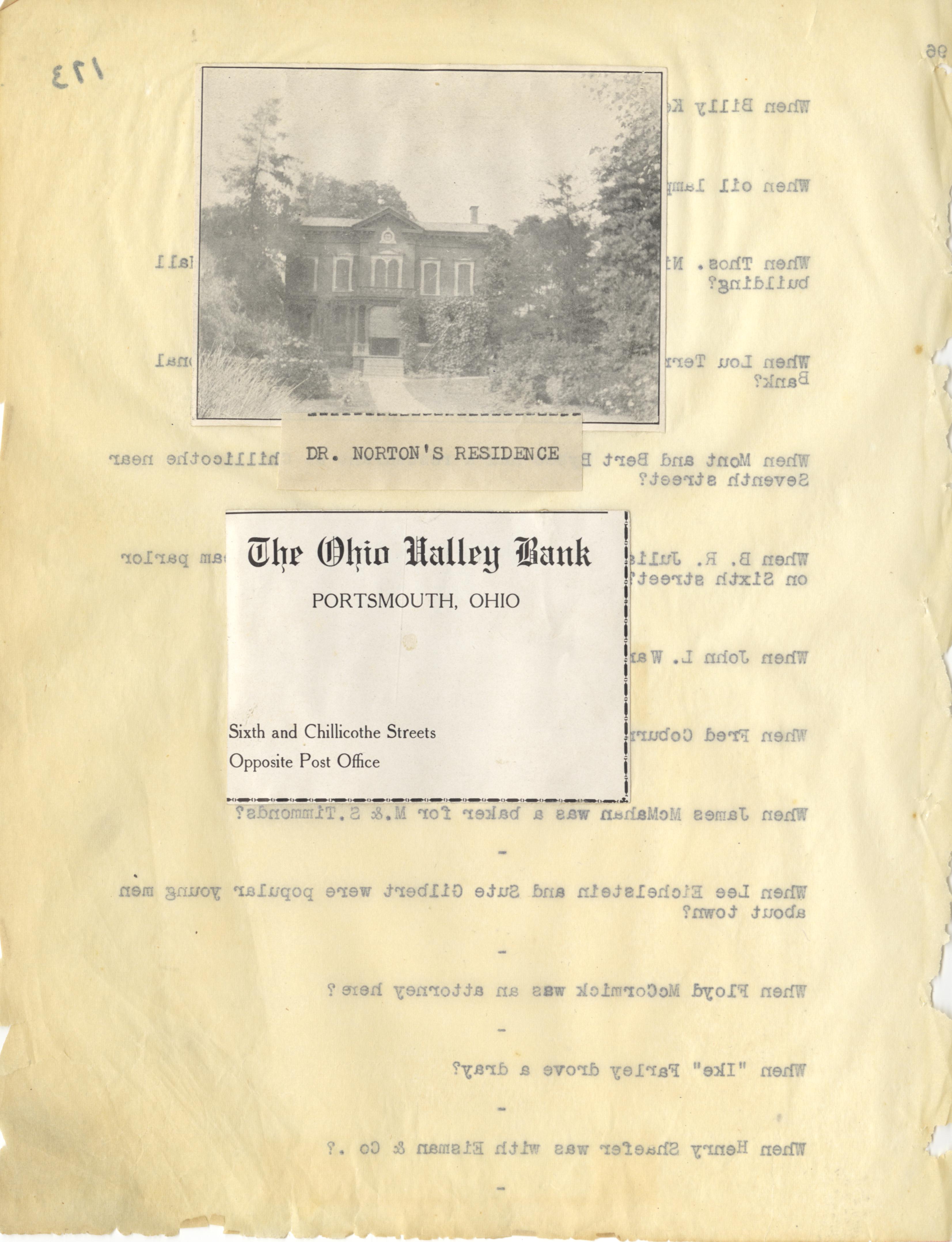 Henry A. Lorberg, “Dr. Norton's Residence; The Ohio Valley Bank,” Scioto County Public Library Local History Digital Collection, accessed December 19, 2025, https://sciotolibrary.org/history/items/show/23074.