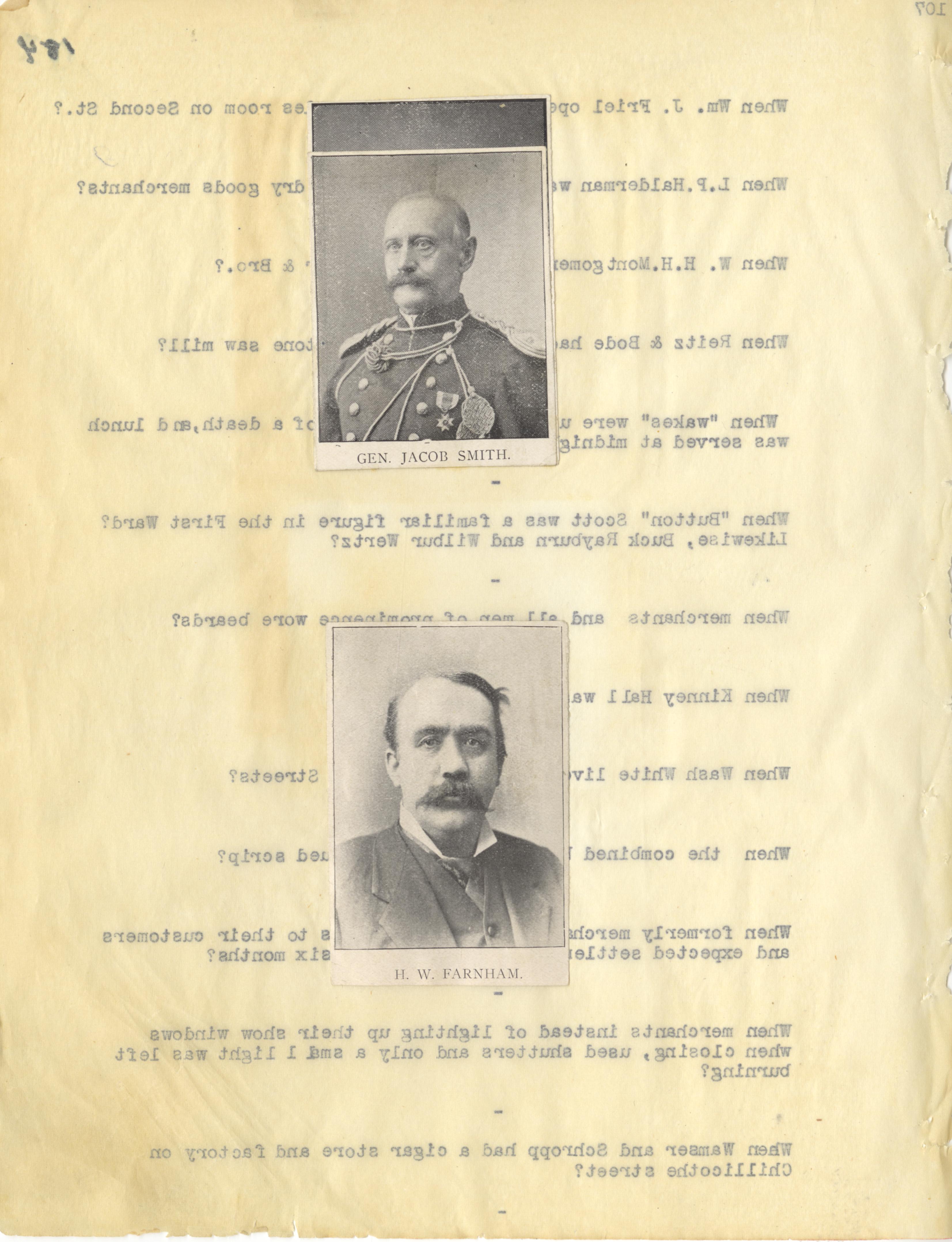 - Photo image of scanned scrapbook page. Gen. Jacob Smith; H.W. Farnham