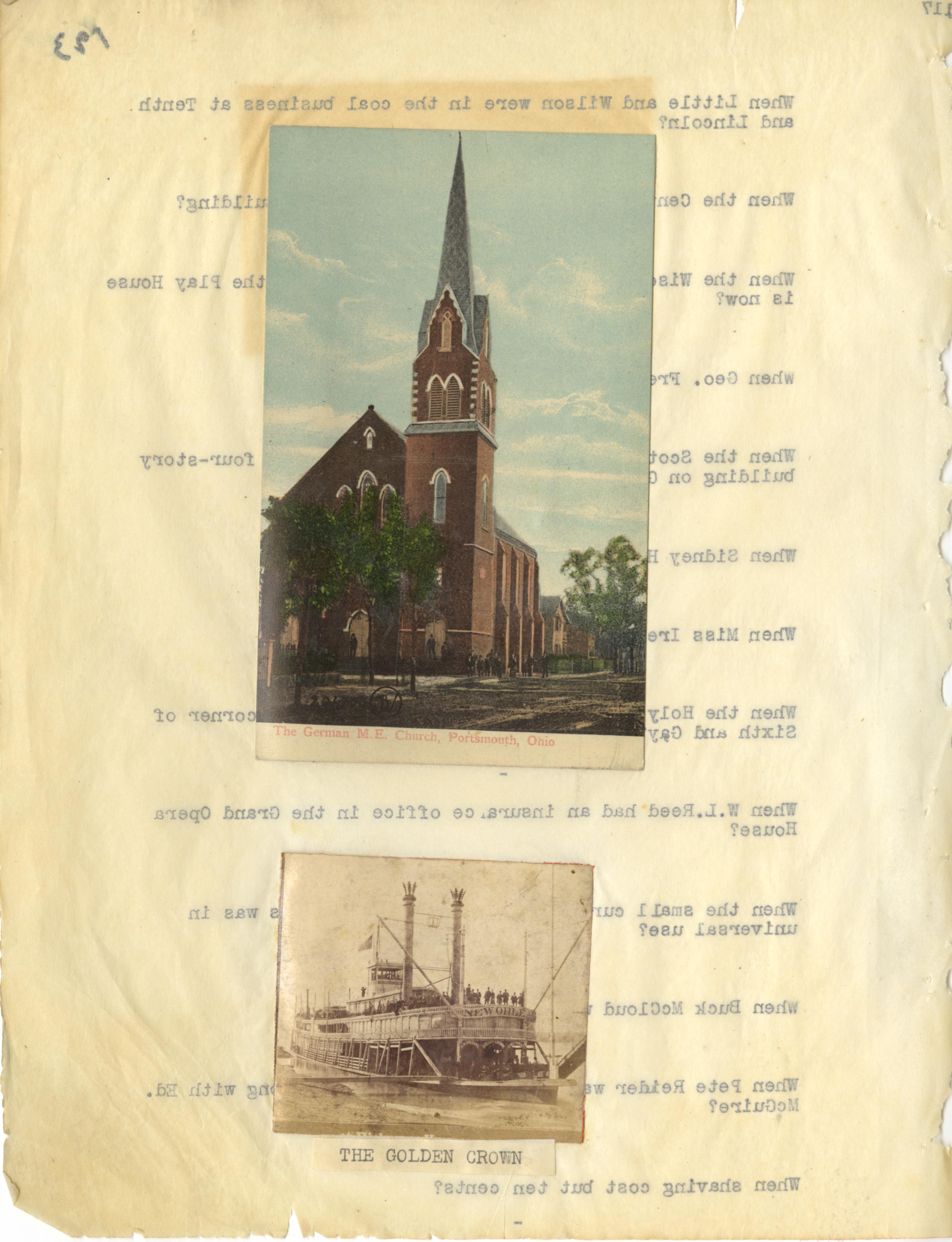 Henry A. Lorberg, “The German M.E. Church; The Golden Crown,” Scioto County Public Library Local History Digital Collection, accessed December 21, 2025, https://sciotolibrary.org/history/items/show/23108.