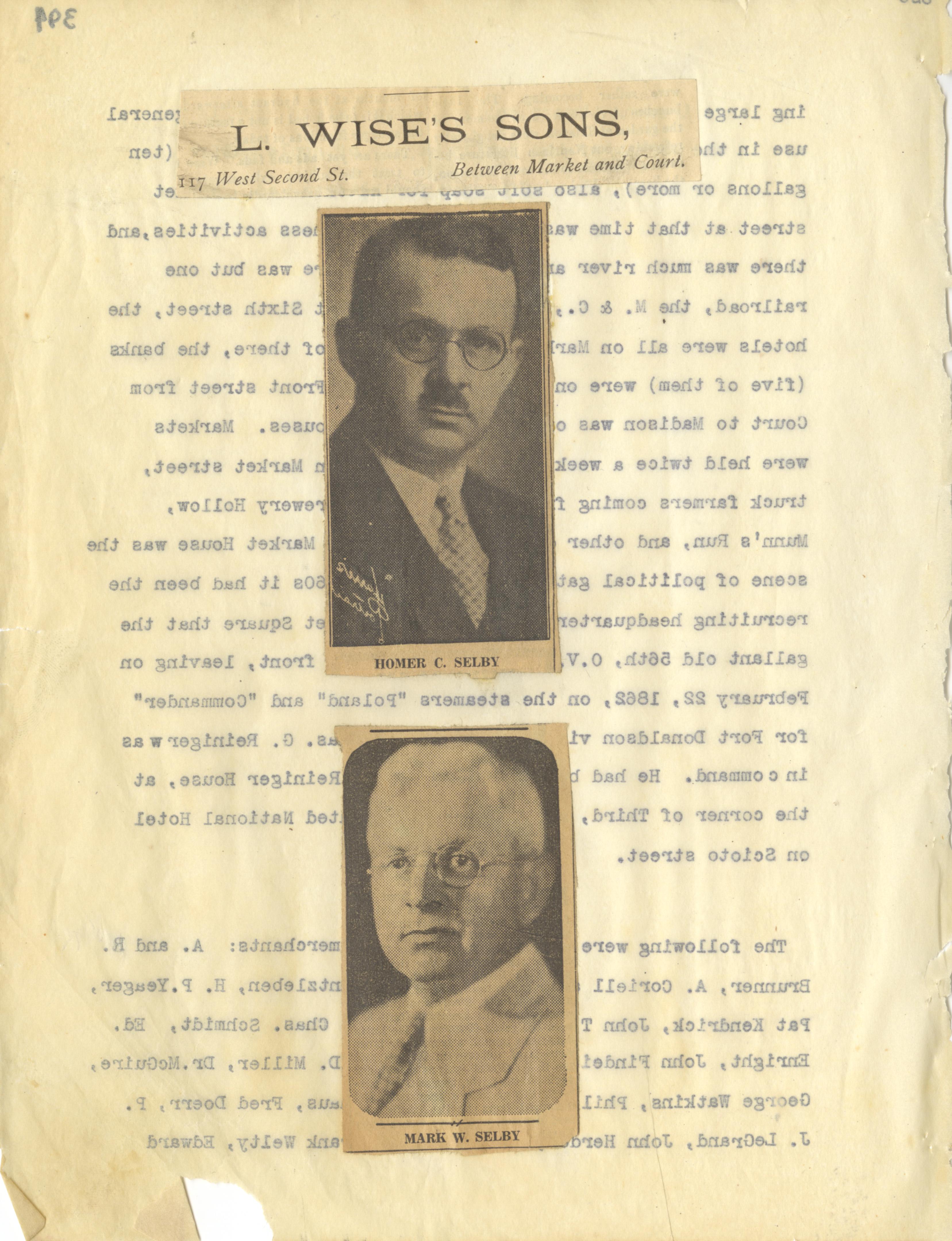 - Photo image of scanned scrapbook page. L. Wise's Sons; Homer C. Selby; Mark W. Selby