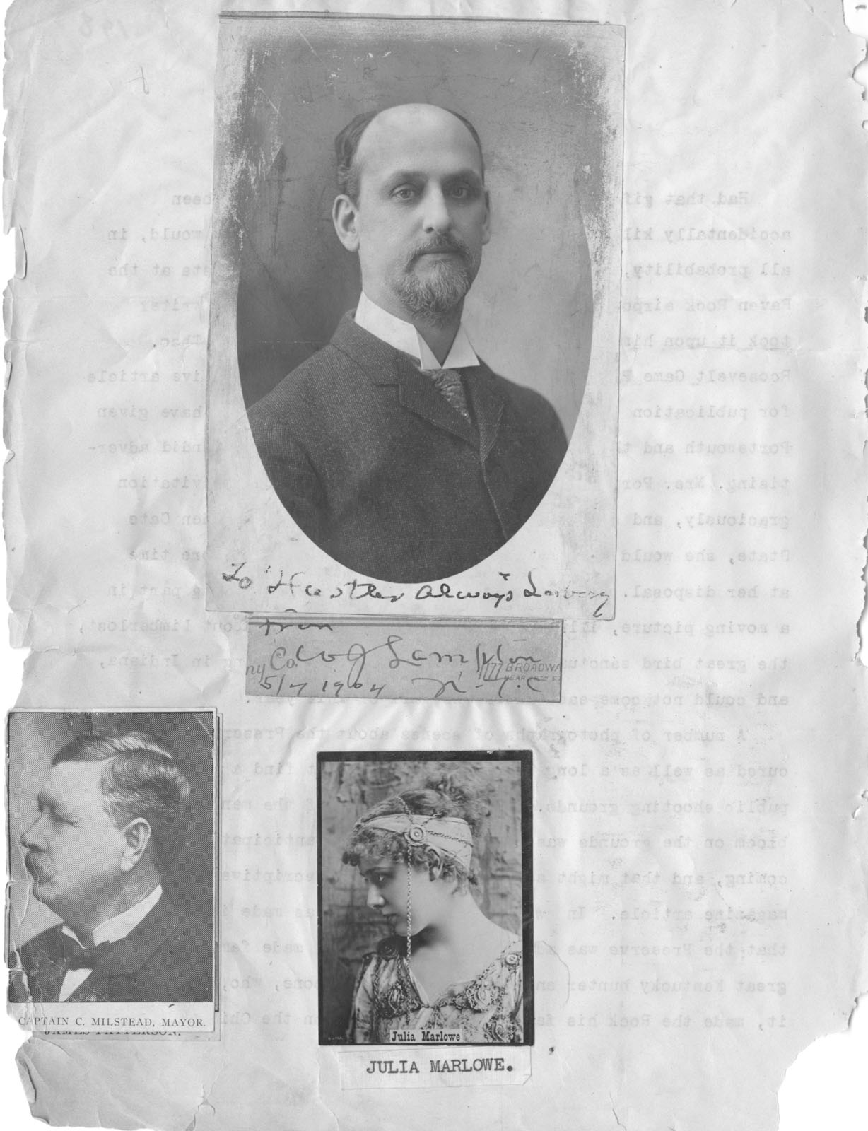 - Scanned unnumbered page from Henry A. Lorberg scrapbook containing black & white images of W. J. Lampton; Captain C. Milstead; and Julia Marlowe.