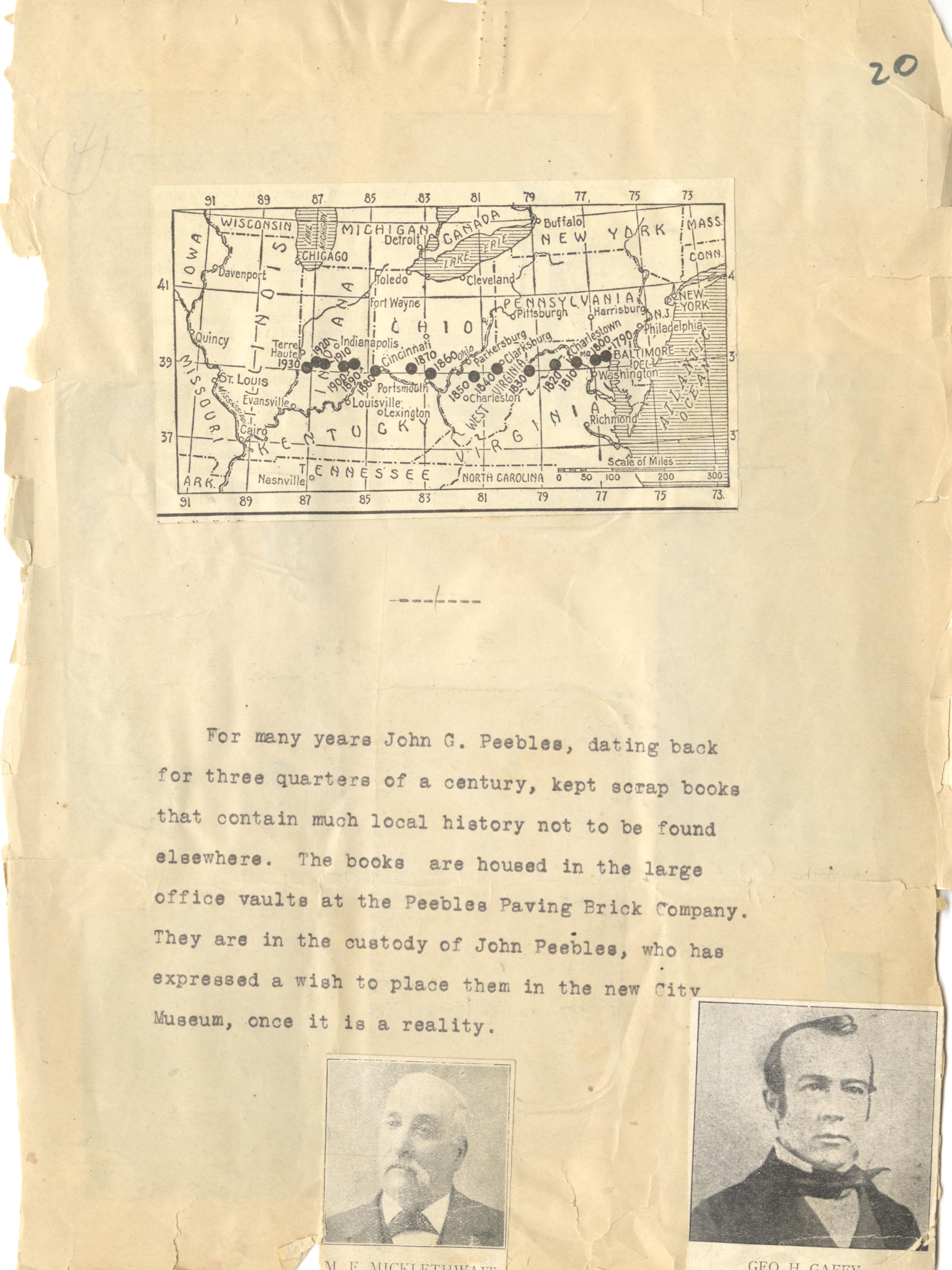 - Midwest Map with Years of Founded City; John G. Peebles; Scrapbooks; Local History; Peebles Paving Brick Company; City Museum; M. Micklethwait; George H. Gaffy