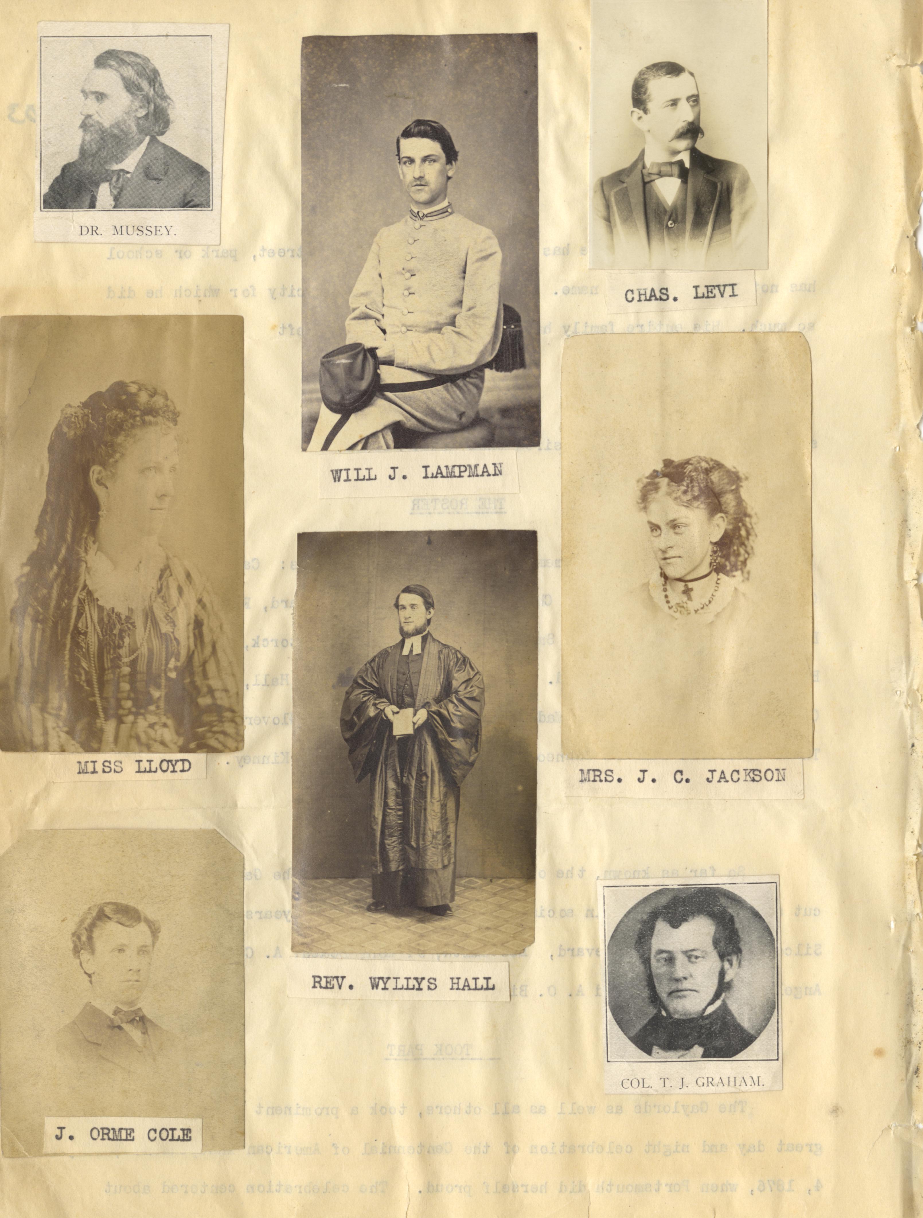 - Photo image of scanned scrapbook page. Dr. Mussey; Will J. Lampman; Charles Levi; Miss Lloyd; Mrs. J.C. Jackson; J. Orme Cole; Rev. Wyllys Hall; Col. T. J. Graham