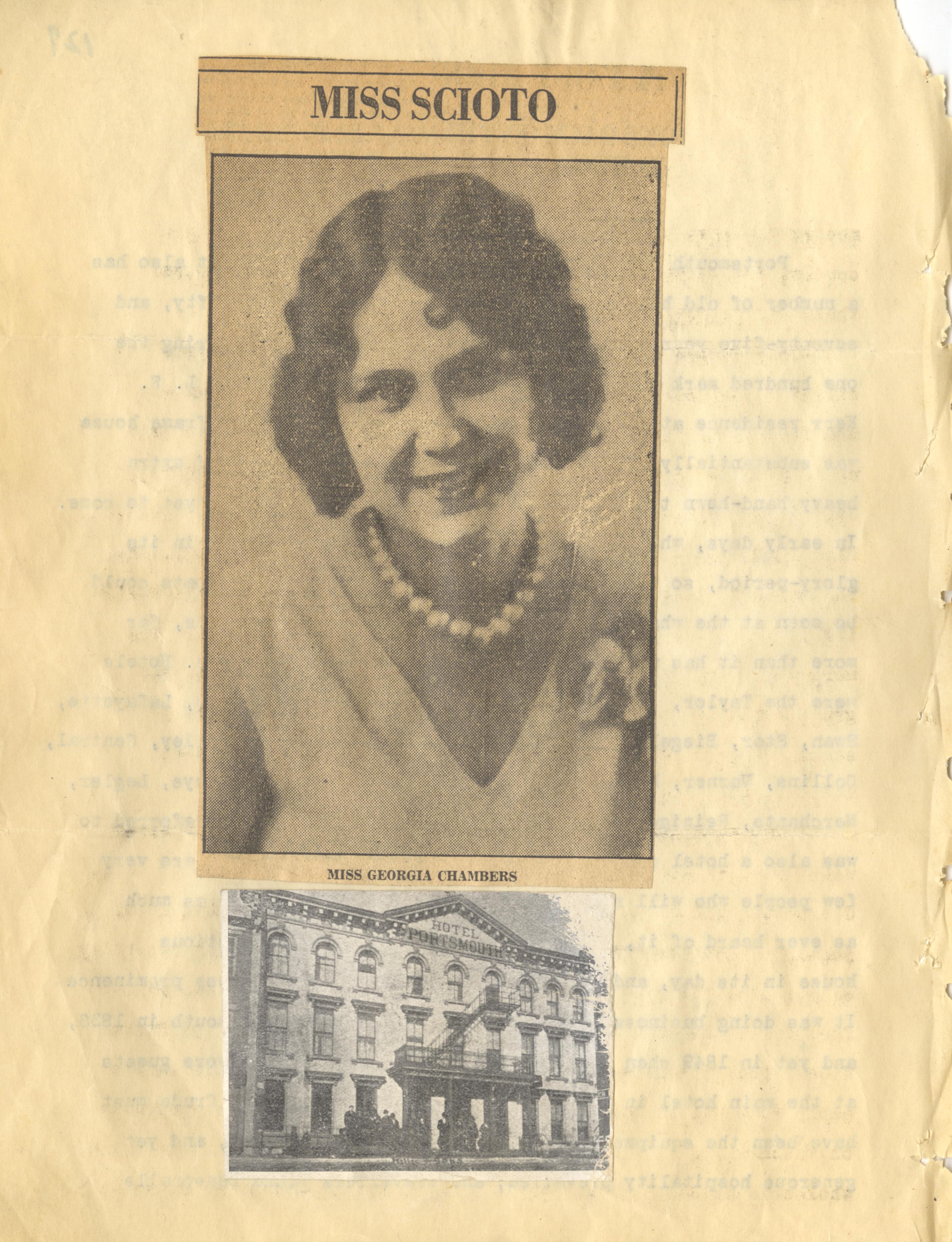 - Photo image of scanned scrapbook page. Miss Scioto; Georgia Chambers; Hotel Portsmouth