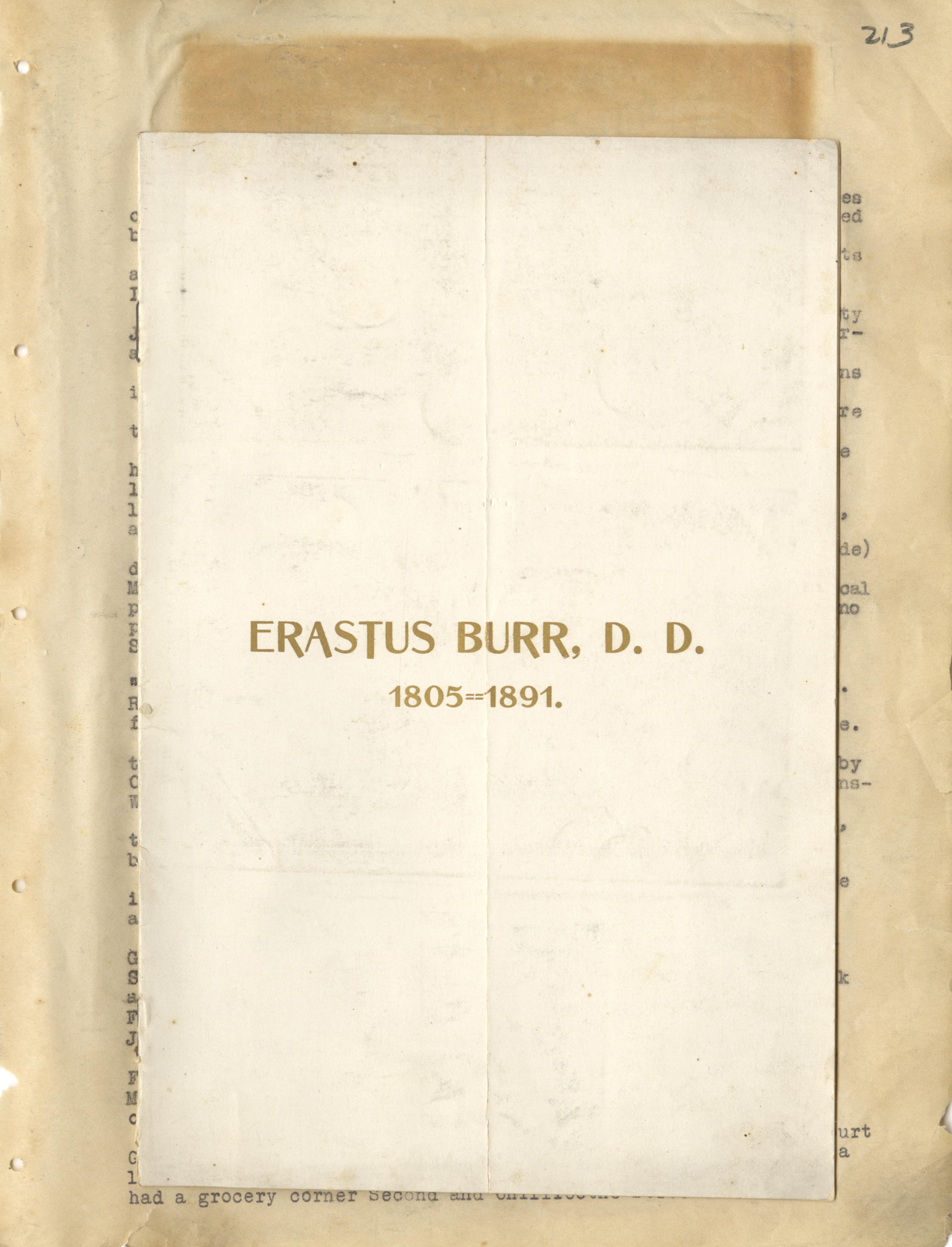 - Photo image of scanned scrapbook page 213. Erastus Burr D. D.; 1805-1891