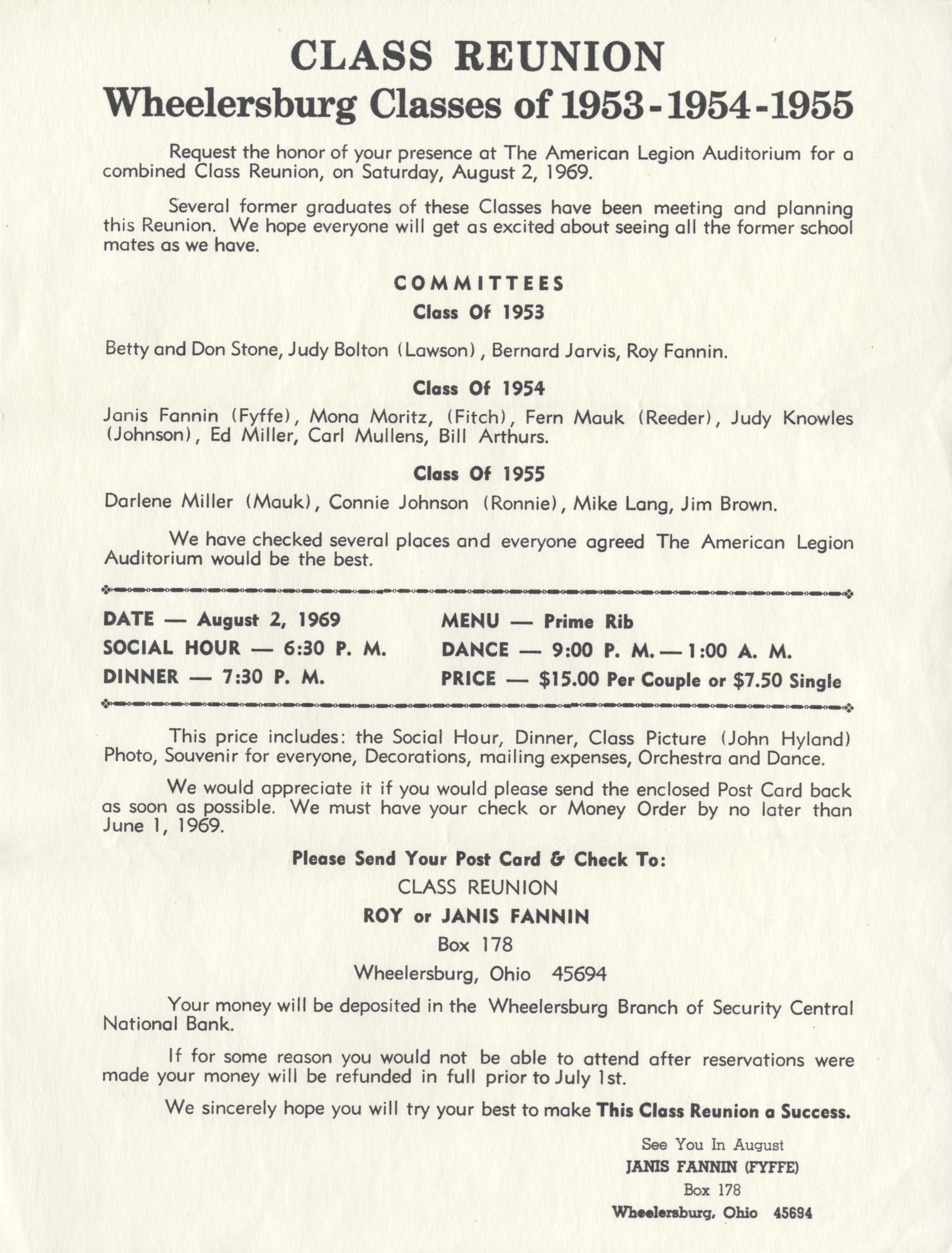 - Class Reunion, Wheelersburg Classes of 1953-1954-1955