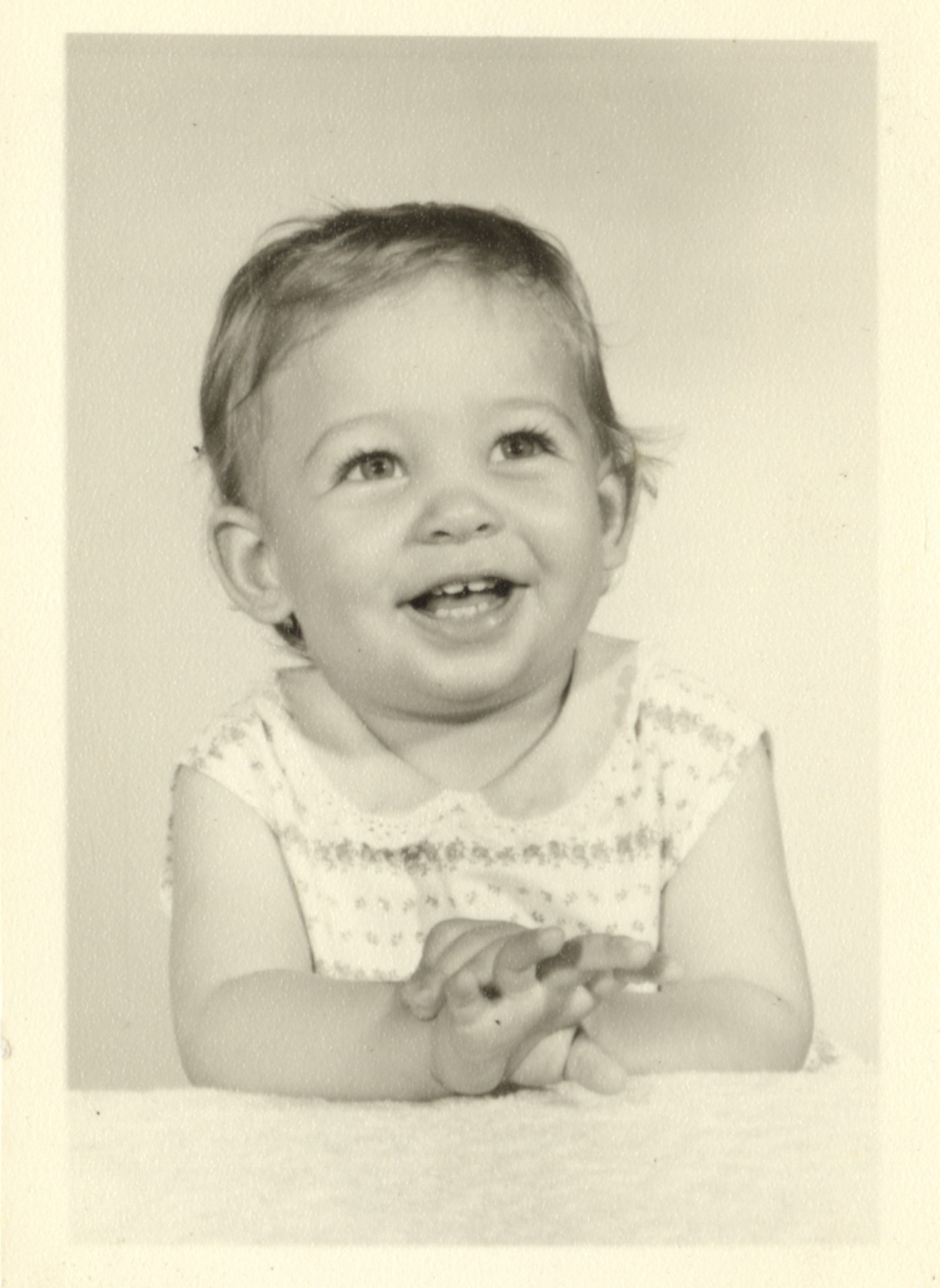 - Black and white photo image of Carole Lea Ramsey, age 1 year, mother Jane Ramsey.
