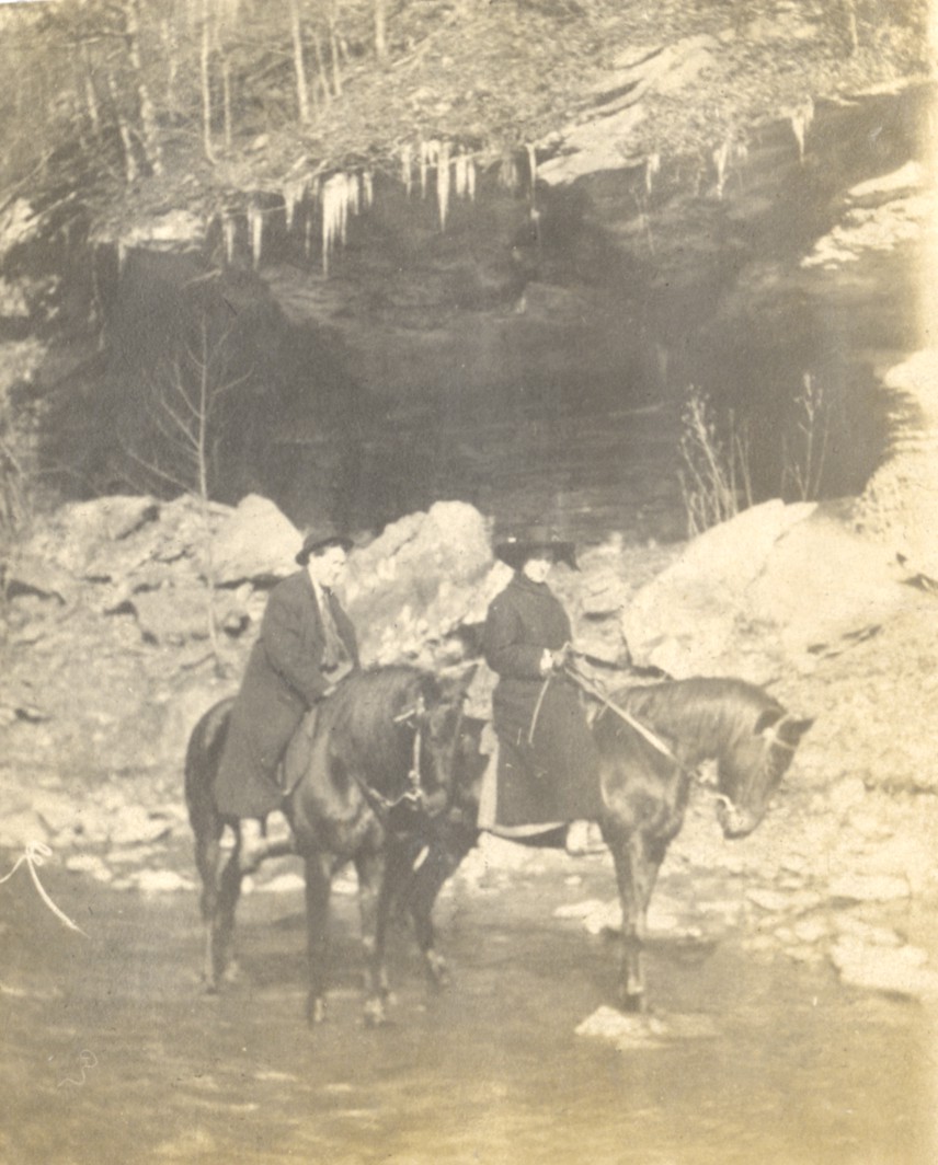 - Sepia tone photo image of Rockhouse Cave. Pictured: Dr. and Mrs. Dotson (William A. and Nora E. Barrett).