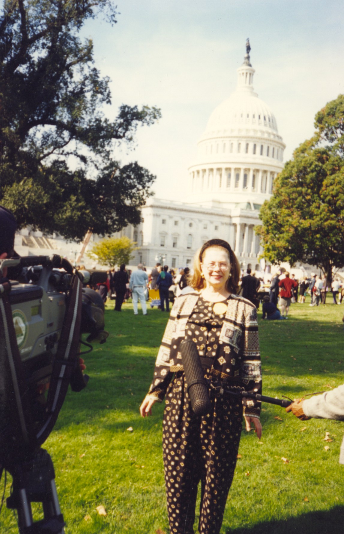 - color photo of Martha J. Allman at the U. S. Capital in Washington being interviewed by the press.