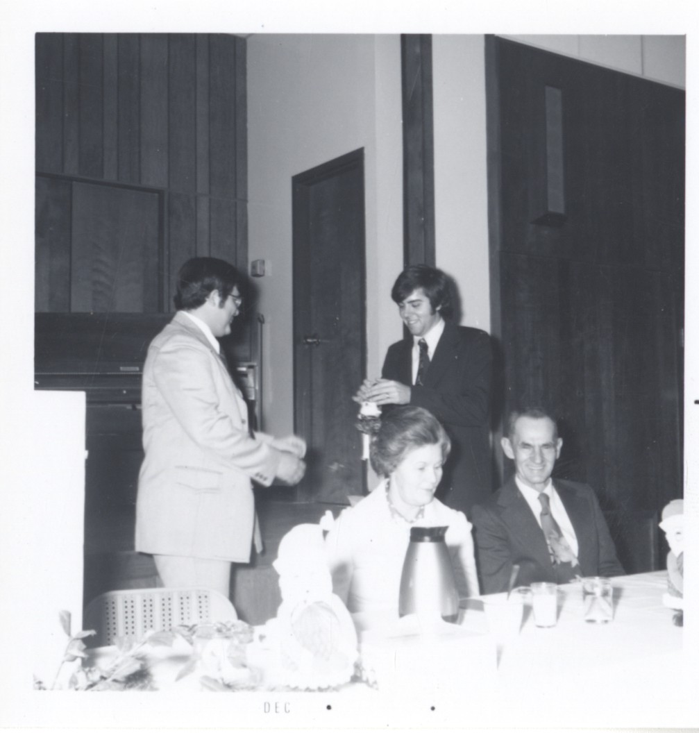 - scan of black and white photo of the Fair Board meeting at the American Legion Hall on December 17, 1975.