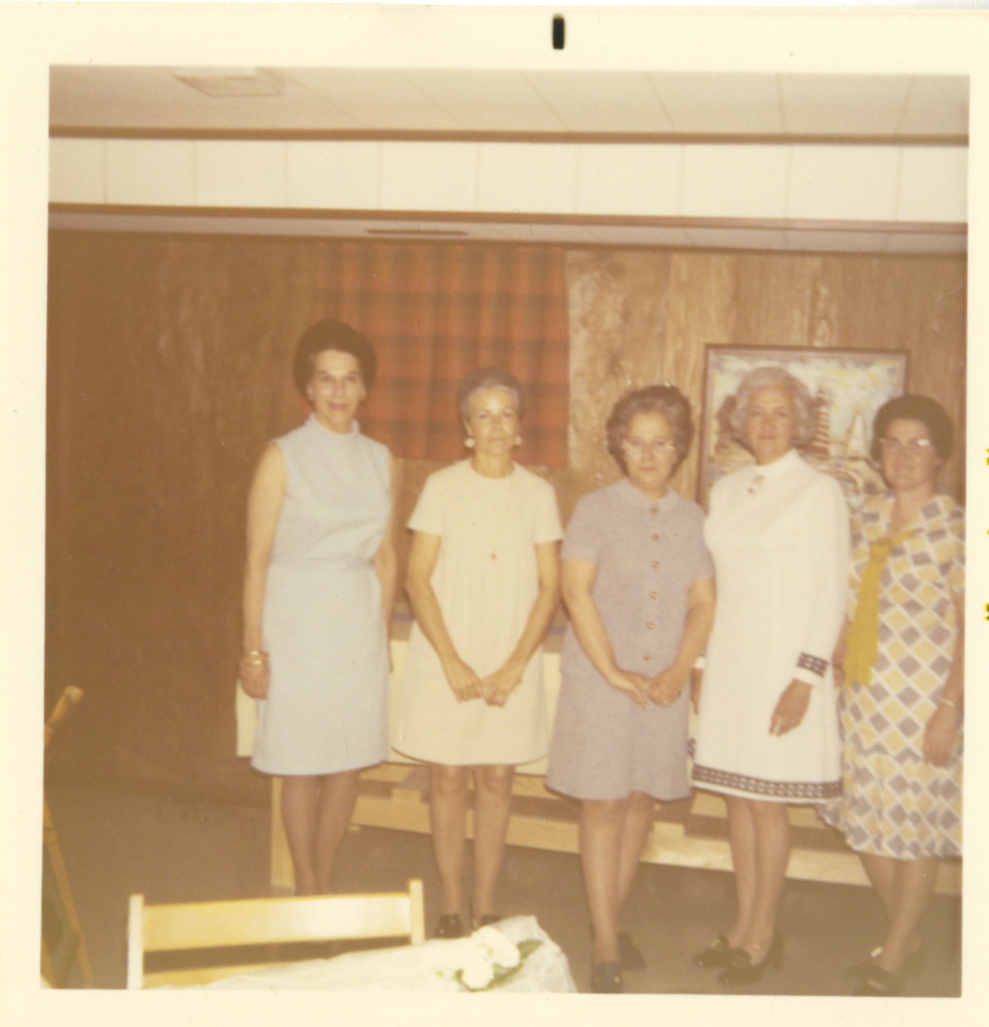 - Colorized photo image of installation of 5 Women's Auxiliary officers.
