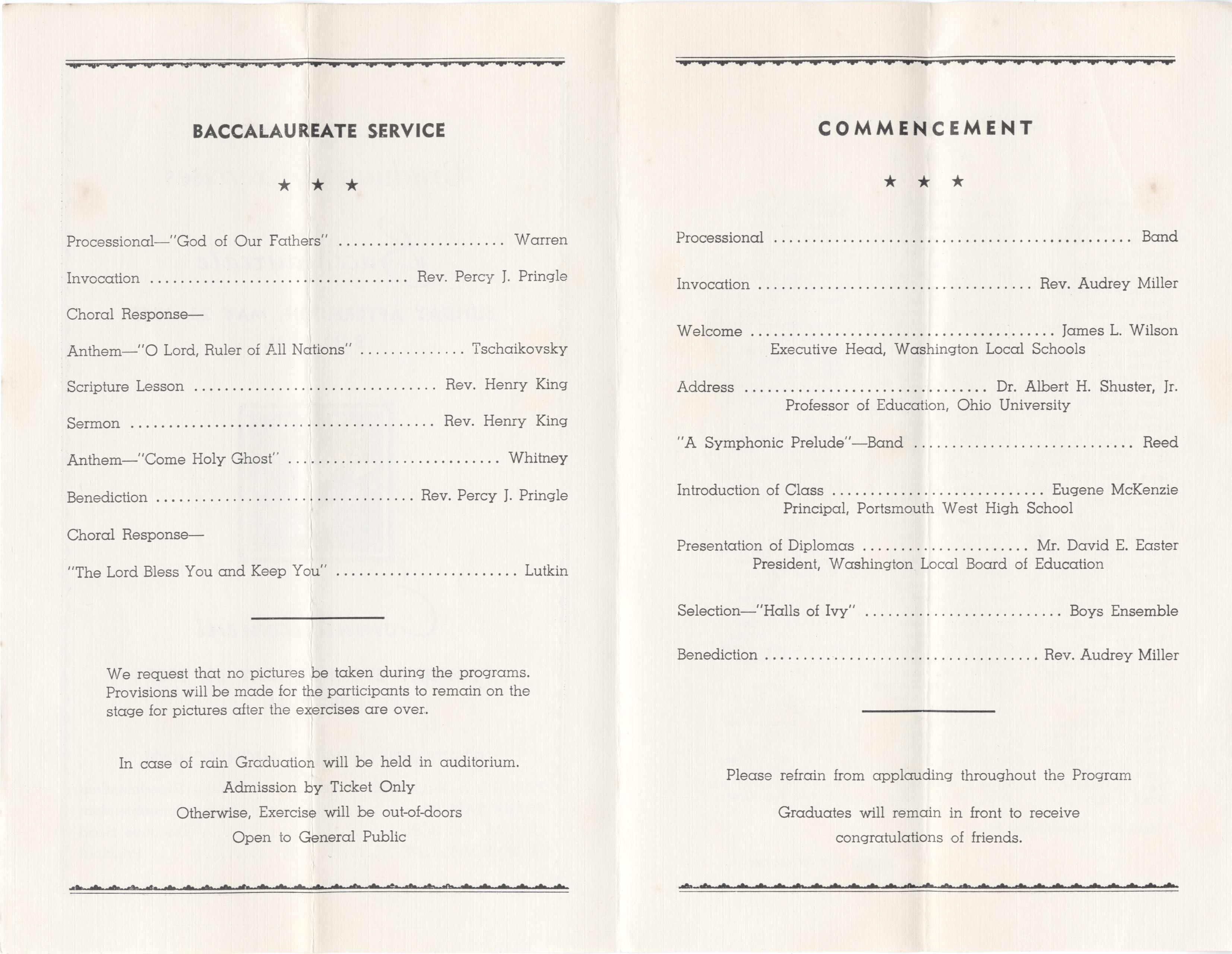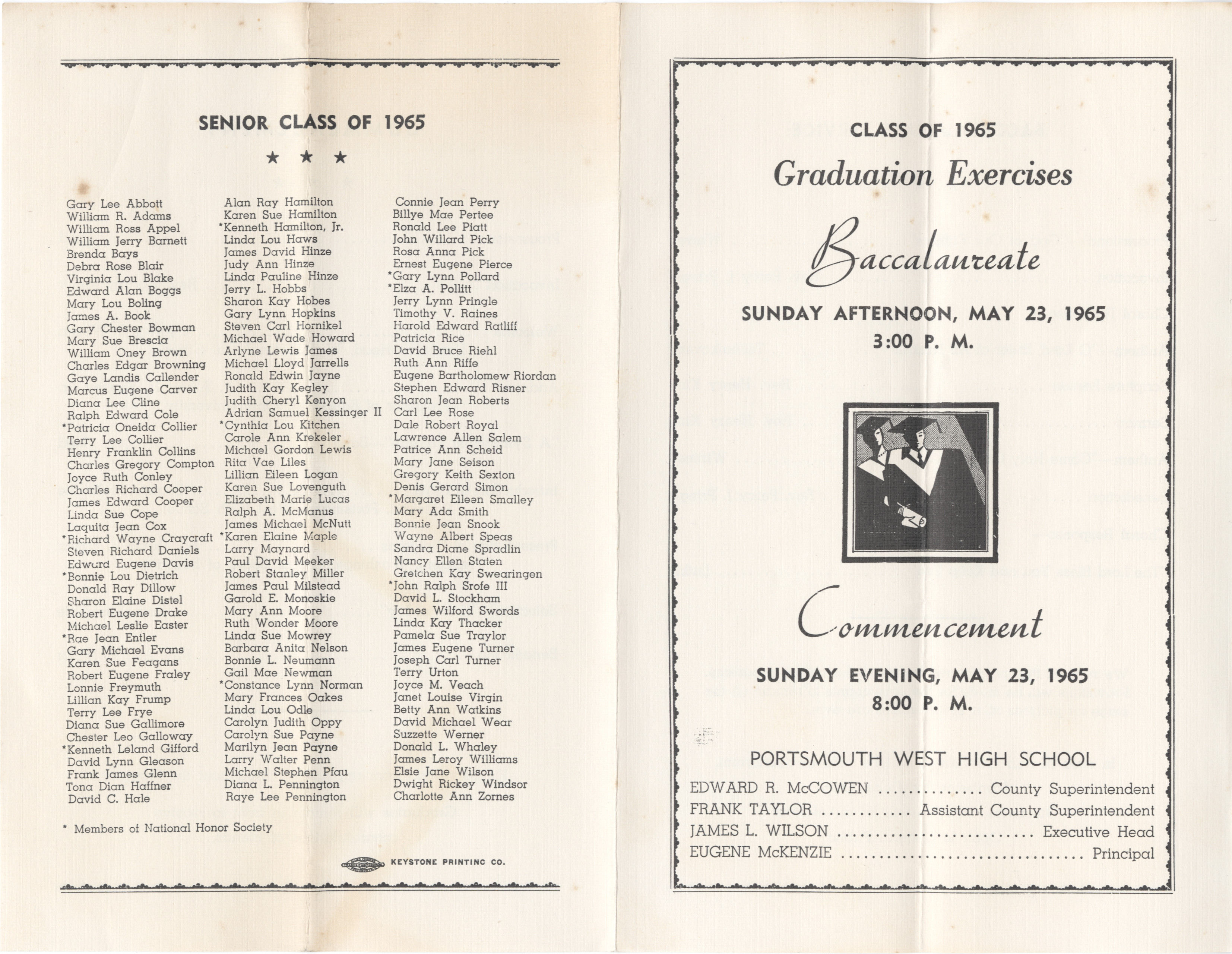 Keystone Printing Company, Portsmouth, Ohio, “Portsmouth West High School graduation - 1965,” Scioto County Public Library Local History Digital Collection, accessed December 15, 2025, https://sciotolibrary.org/history/items/show/30024.